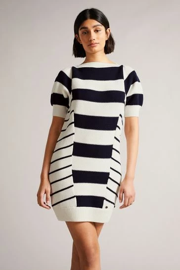 Ted Baker Arisu White Envelope Neck Puff Sleeve Sweater Dress
