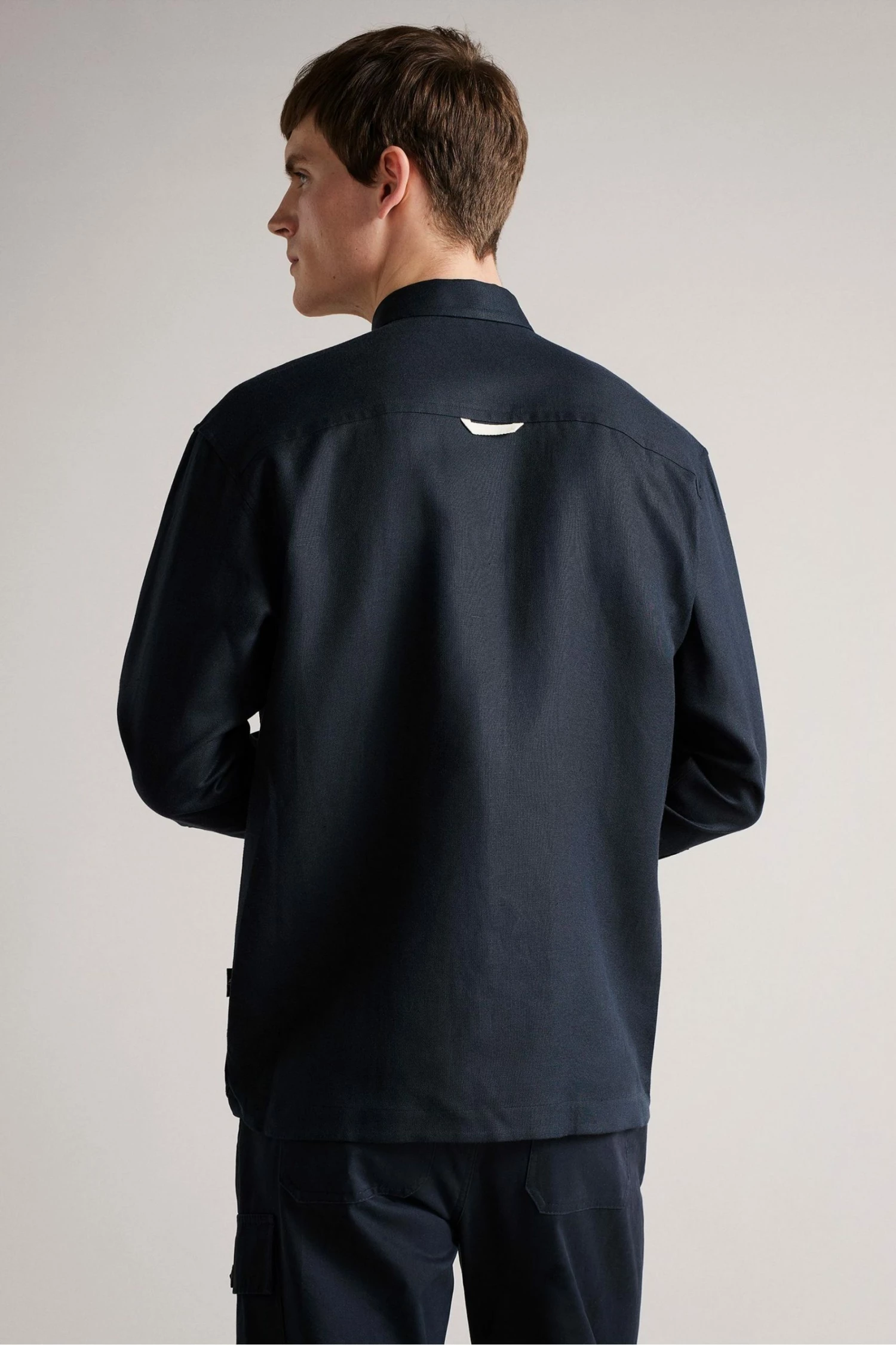 Ted Baker Belvue Blue Long Sleeved Heavy Linen Blend Shirt