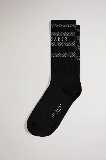 It is that time of year where your sock drawer needs a little refresh. Revamp your footwear collection with these Ted Baker socks. Designed with a chain print and branded print on the ankle, the socks are perfect for lounging around the house or under some boots for all day comfort and cushioning.