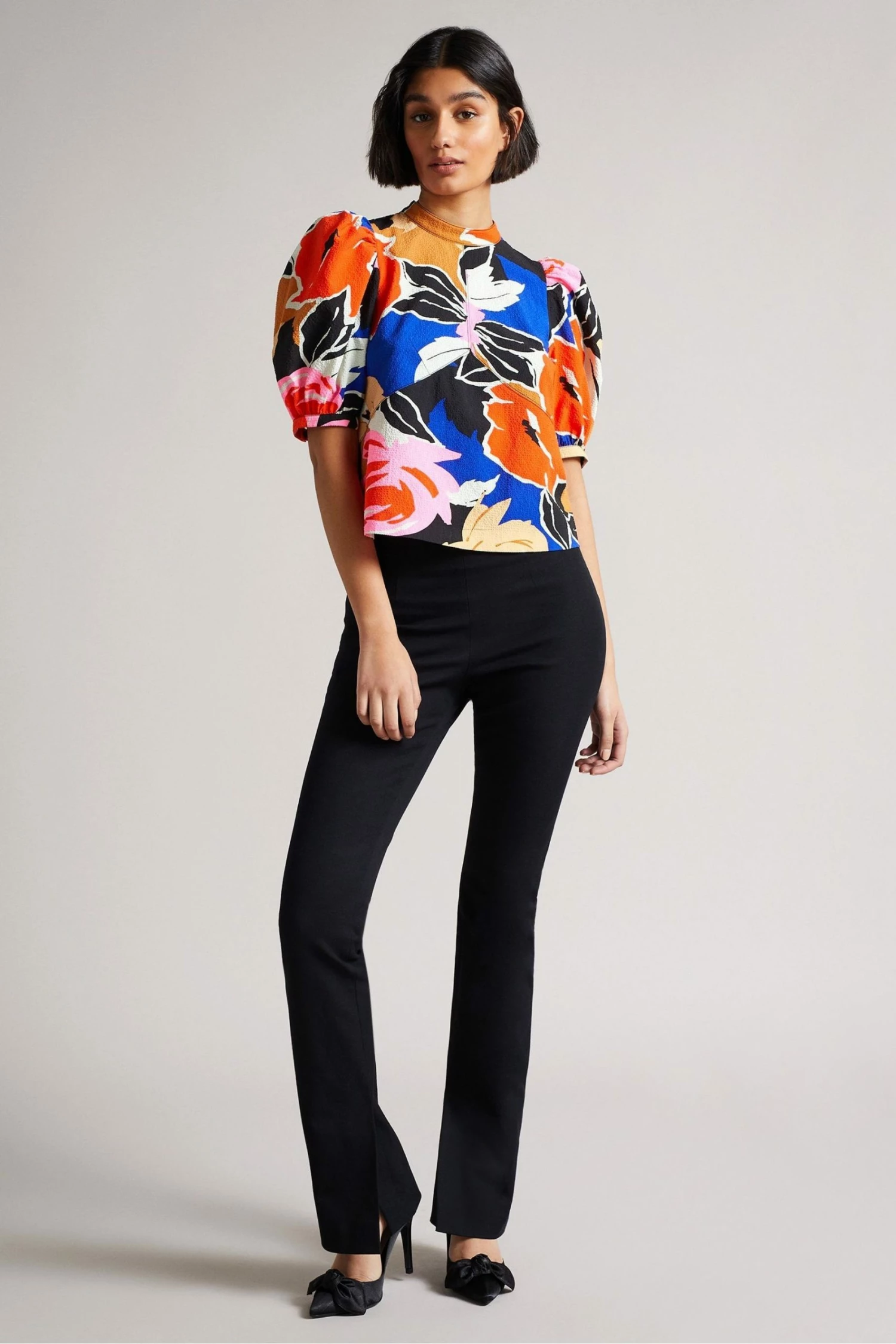 If it s a statement you want, it s a statement you ll get with AZURA. Bringing bold colour pops and taking them to the next level, the fabulous all-over Bolt On print is exclusive to Ted Baker. Meanwhile, the puff sleeves and high-neck add cutting edge drama and luxe flourish, making this ideal for pairing with simple trousers and heels for those fun nights out.