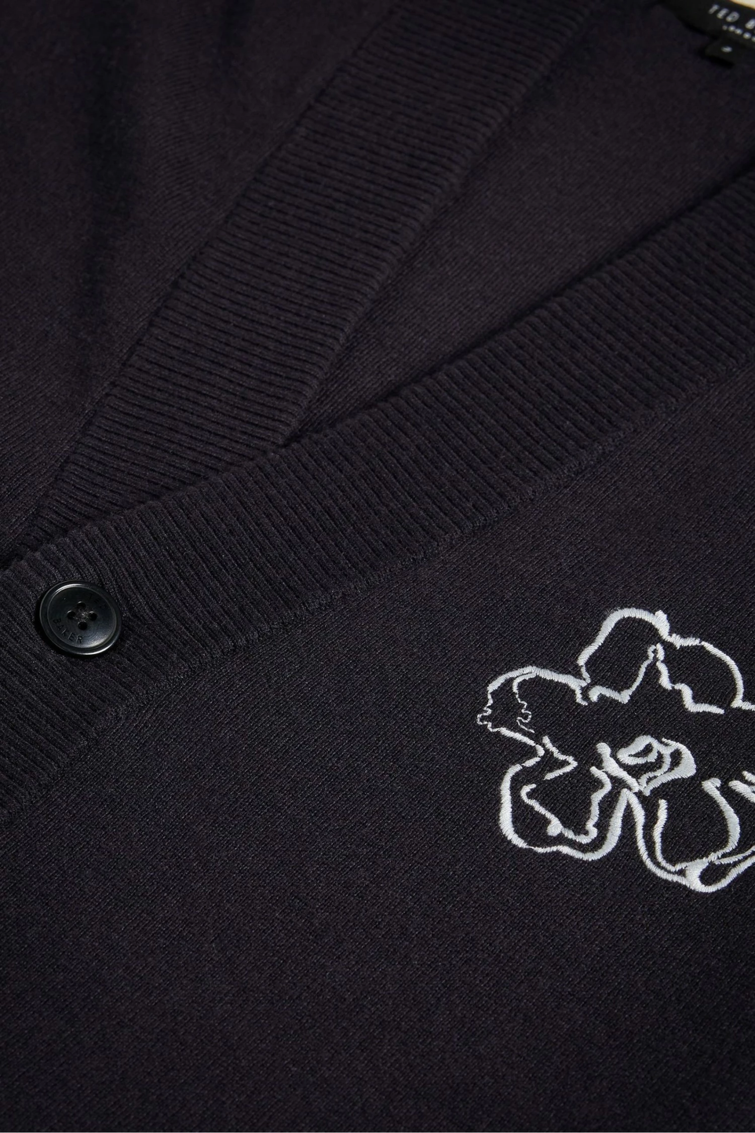 Add an extra layer of warmth to your outfit this season with this Ted Baker cardigan. Suited for smart occasions, the cardigan can be worn over a t-shirt and fastened up with the button up front. A flower placement print is aligned on the chest of the cardigan for added style with the cuffed sleeves implemented for extra cosiness.