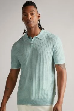 Ted Baker Blue Pitfeld Knitted Stitch Polo Shirt