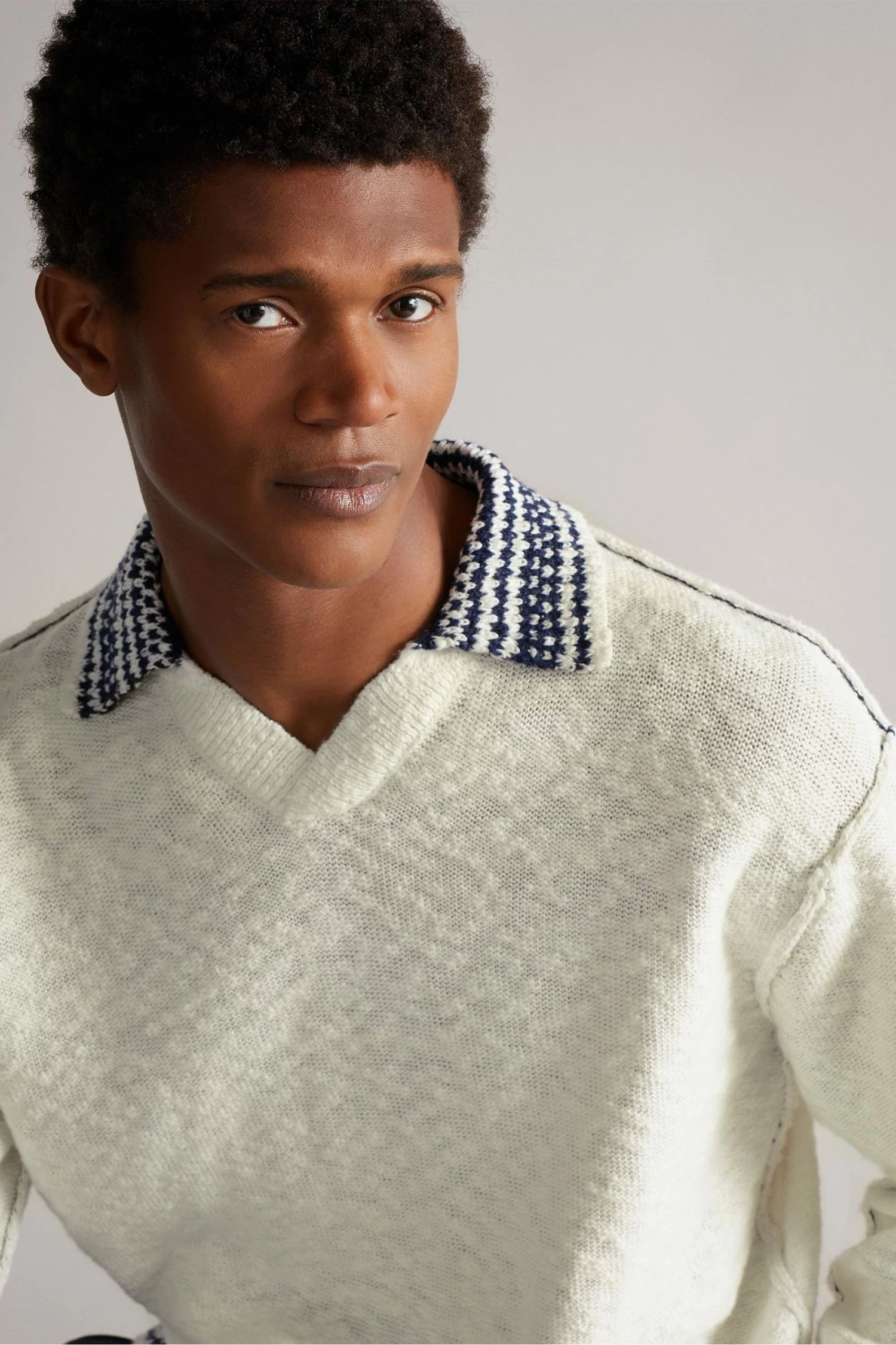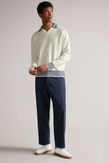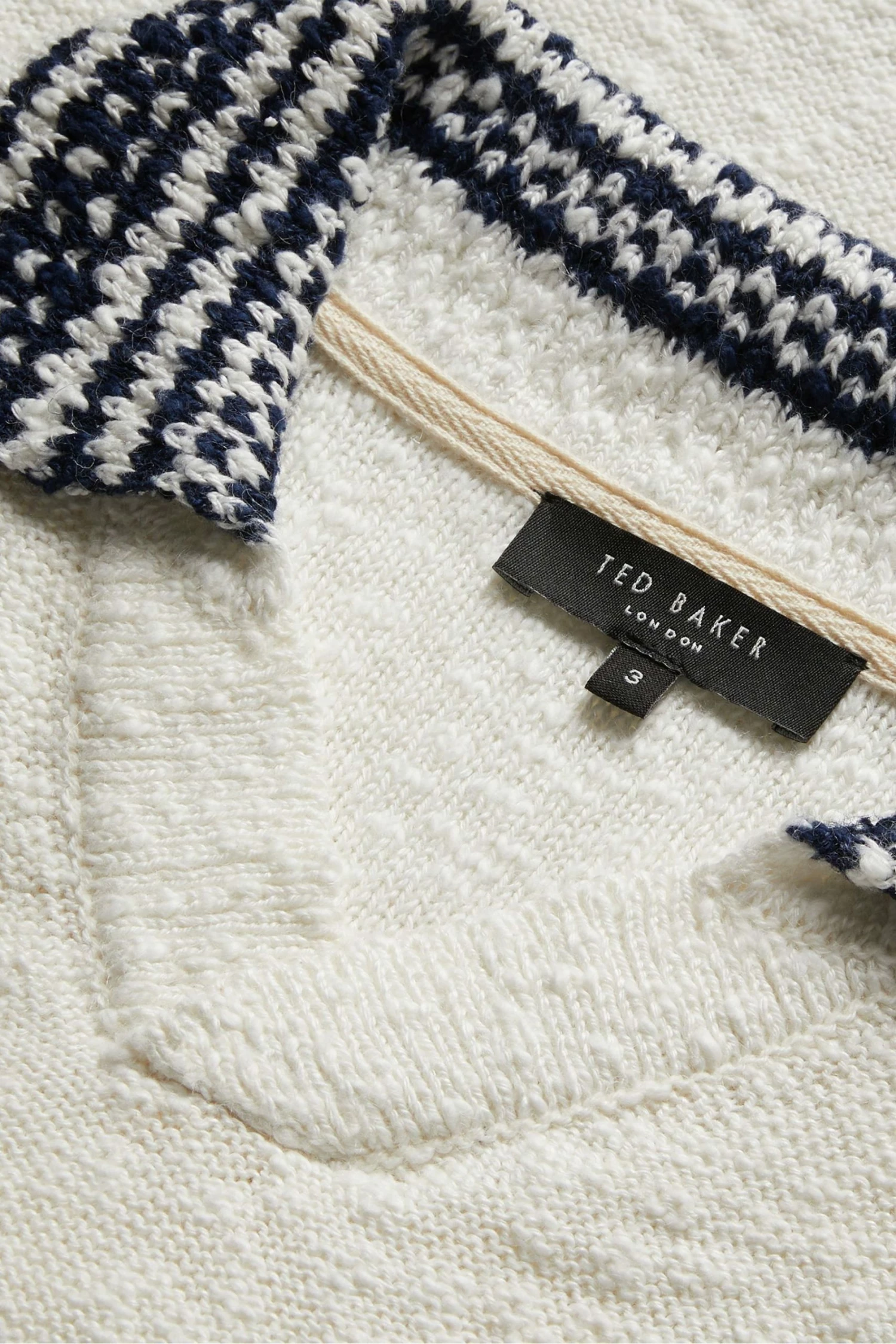 Ted Baker Cream Burlee Long Sleeve Open Striped Collar Crew Shirt