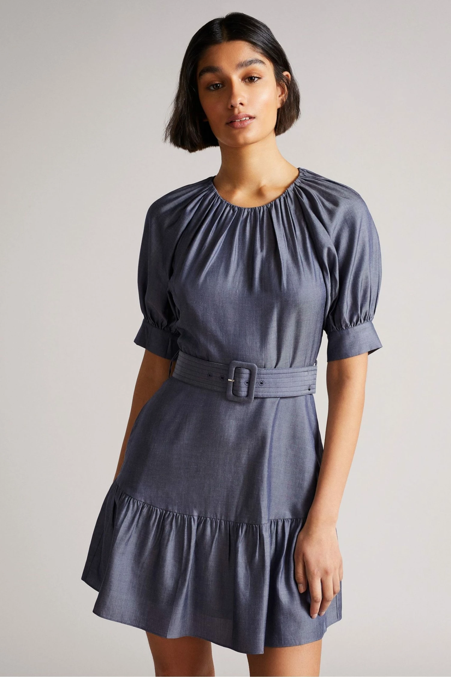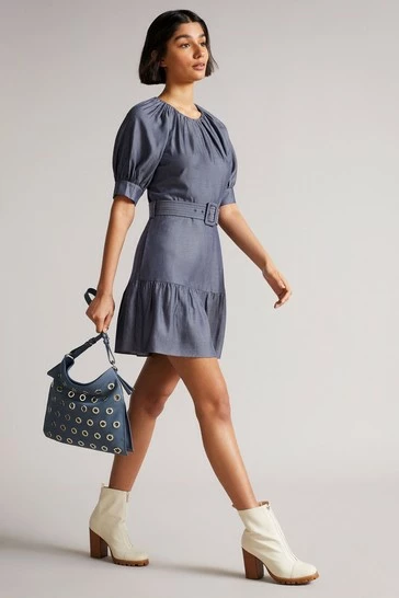 A staple style with an elevated finish, this Damiale mini dress from Ted Baker features puff sleeves and ruched detail. Finished with self belt, zipped back fastening and Ted Baker branding.