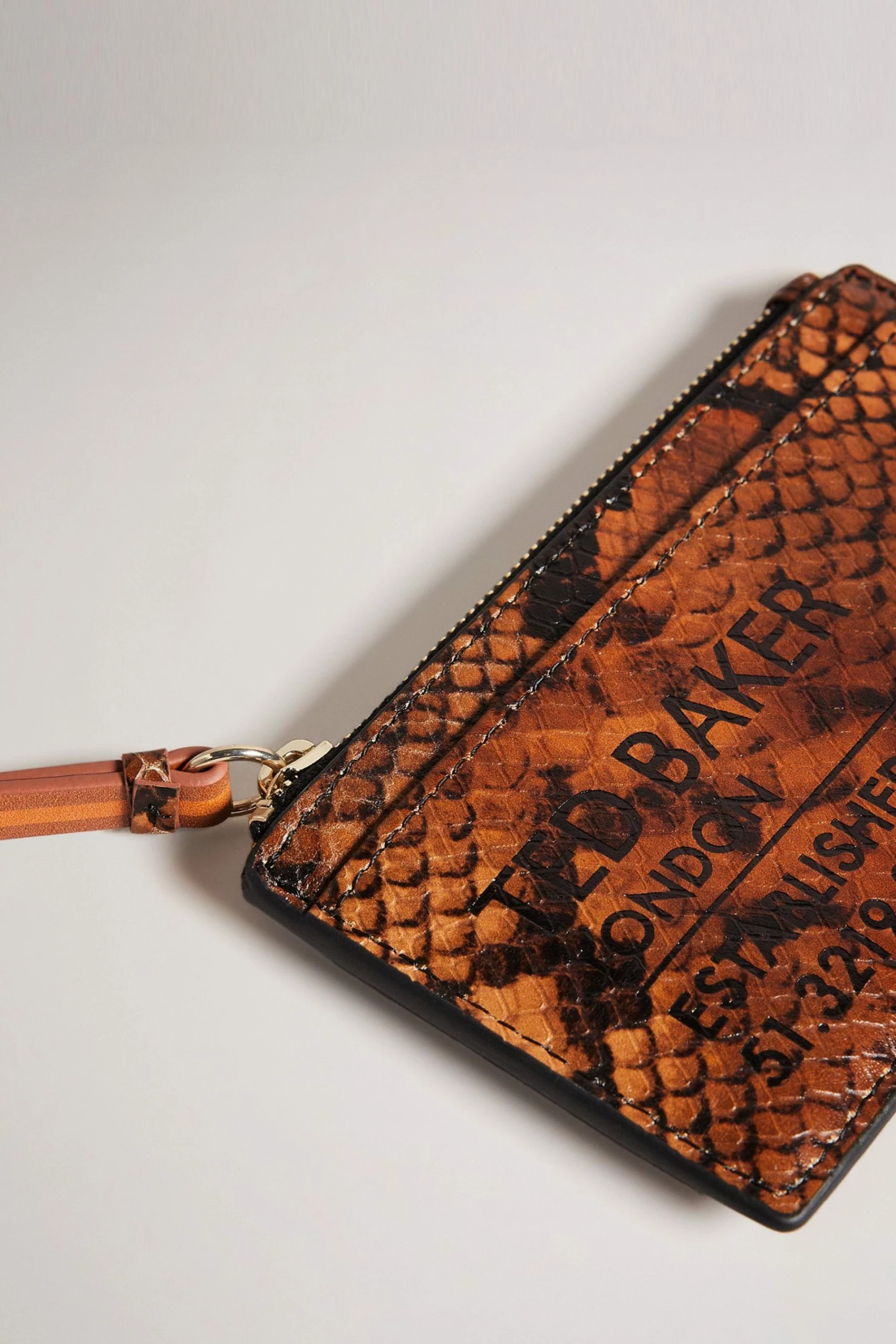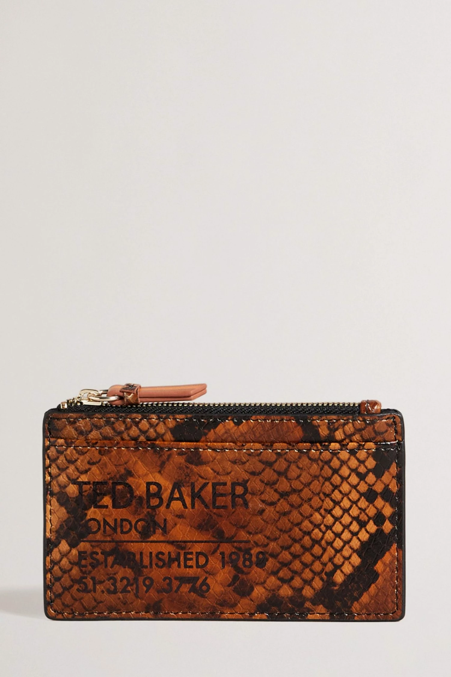 A fun addition to your accessories collection. this Darcens coin purse from Ted Baker is crafted in Bovine leather. Smart and compatible, it features zip lock fastening, cardholder compartments and Ted Baker branding. W13cm x H8cm x D0.5cm.