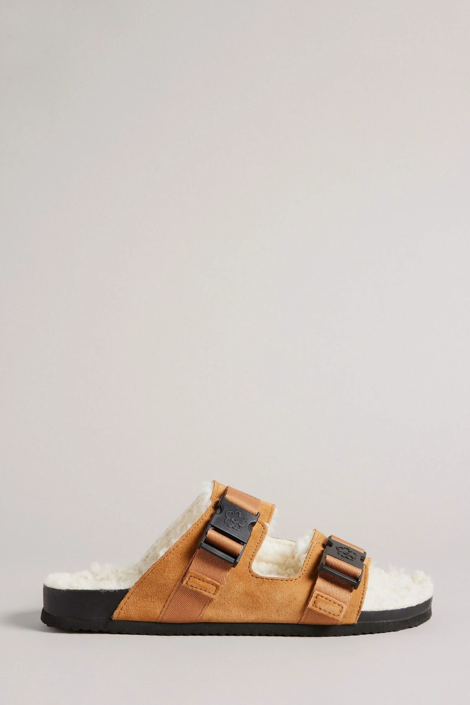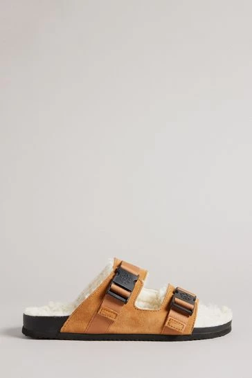 Ted Baker Dougie Brown Suede Nylon Clip Two Strap Slippers
