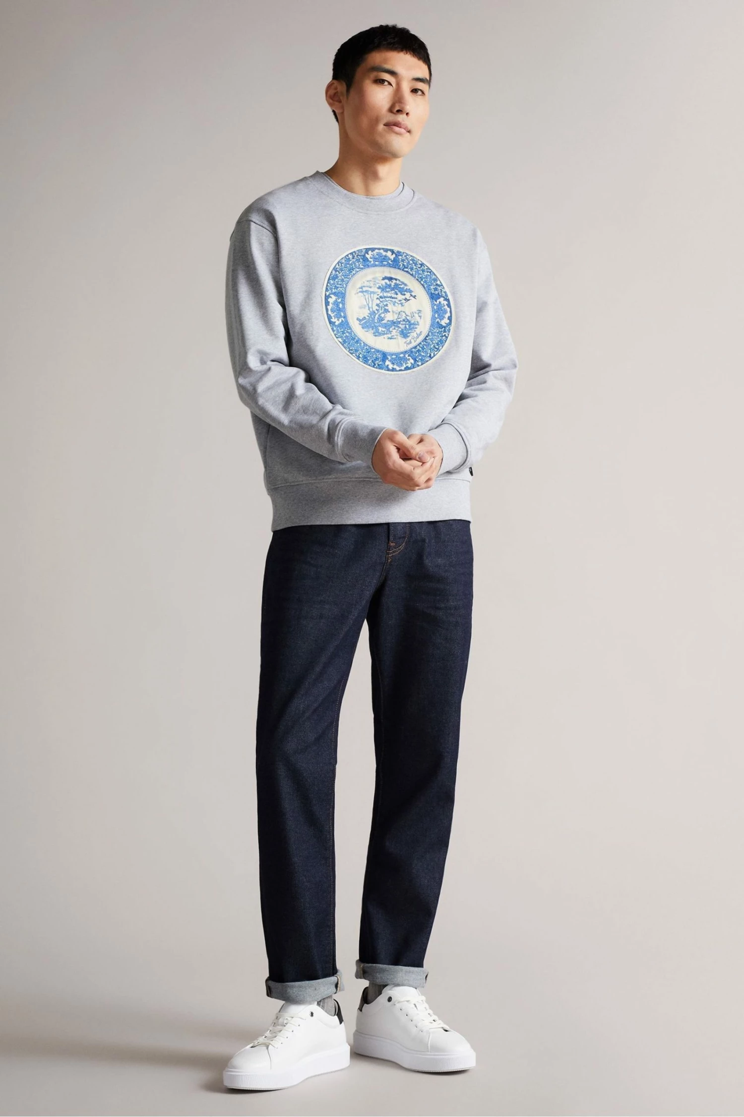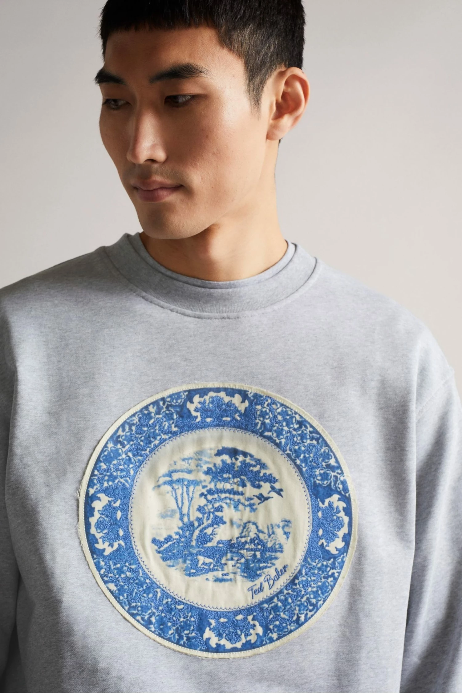 Ted Baker Elbe Grey-Marl Relaxed Fit Graphic Sweatshirt