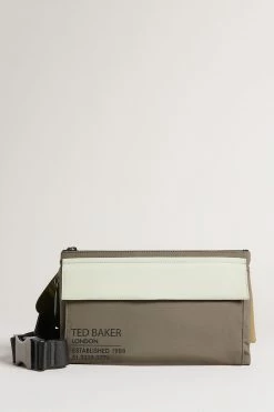 Carrying your essentials will be much easier using this Ted Baker bum bag this season. Designed with a color block print and official Ted Baker slogan print, the bag is fitted with a large zip up compartment featuring a hidden zip pocket inside. Adjust the cross body strap with the buckle to style the bag either around your waist or cross body for a stylish look.