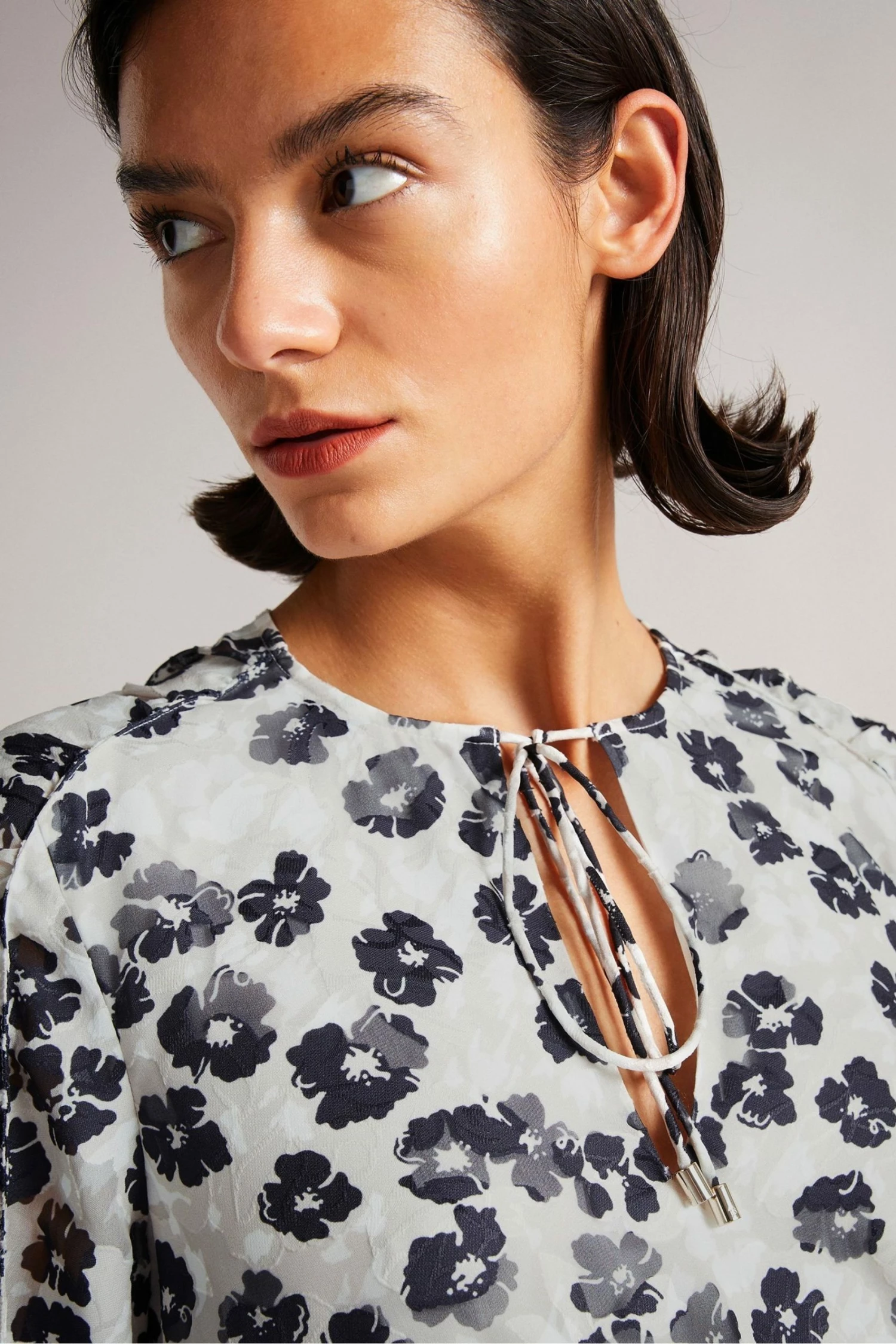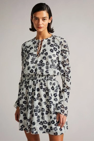 A pretty style for your everyday wardrobe, this Felici dress from Ted Baker is designed with the exclusive New World print. In a mini style, with ruched detailing, tied neck, bell sleeves and finished with Ted Baker branding.
