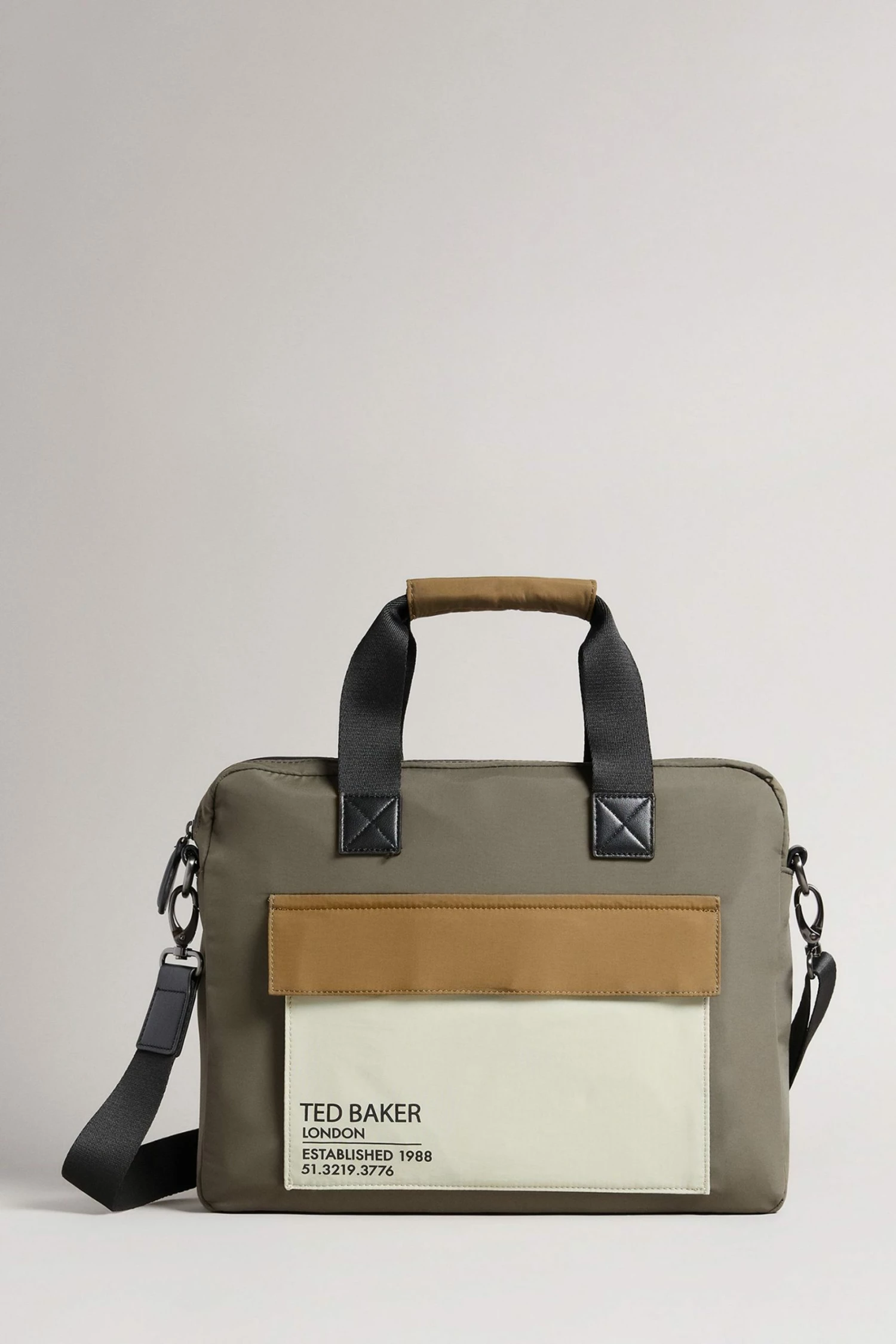 This super stylish colourblock document bag from Ted Baker is perfect for on-the-go professionals. With easy to carry handles, removable and adjustable shoulder strap, zipped top opening, interior pocket and Ted Baker branding.