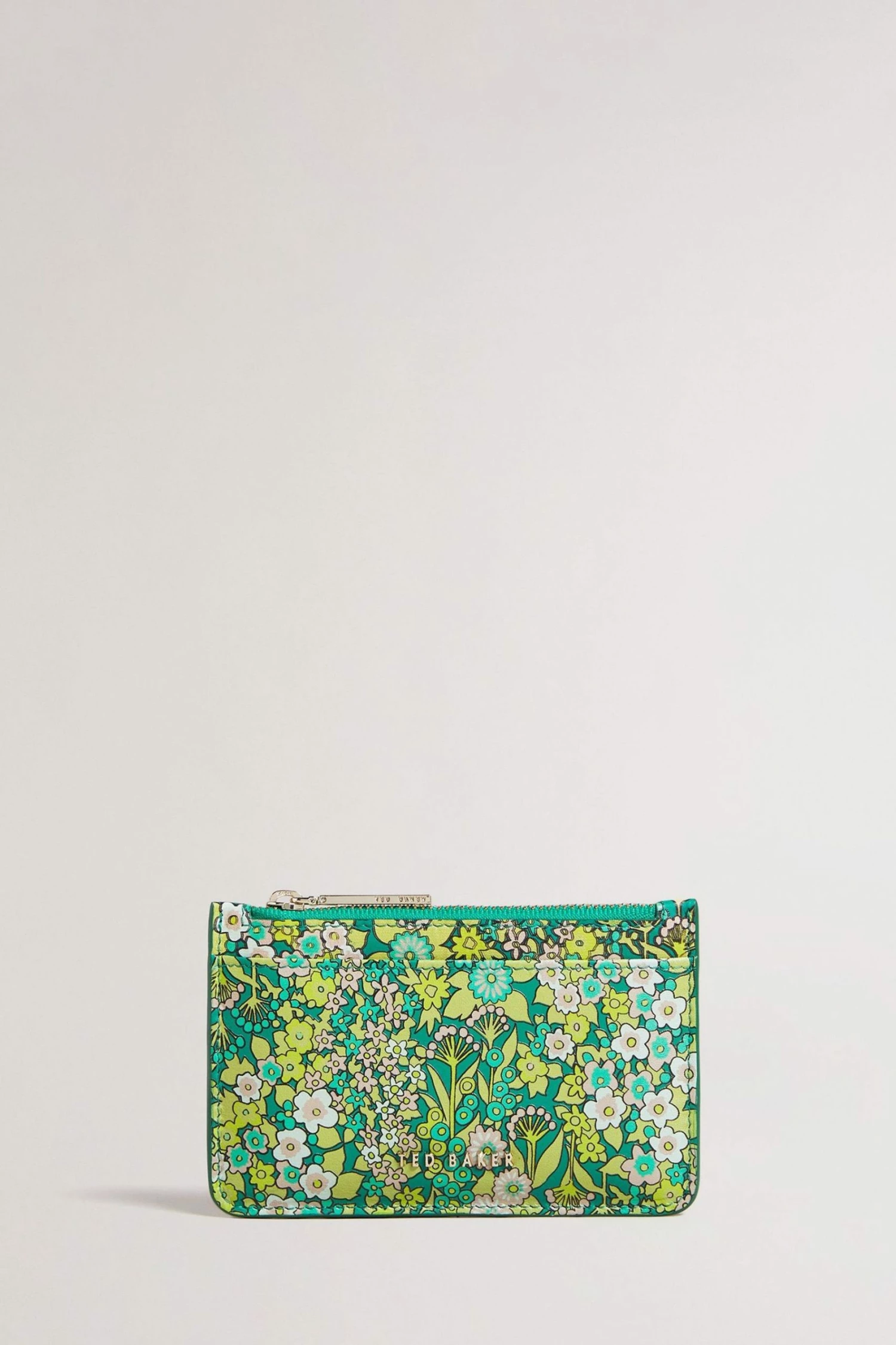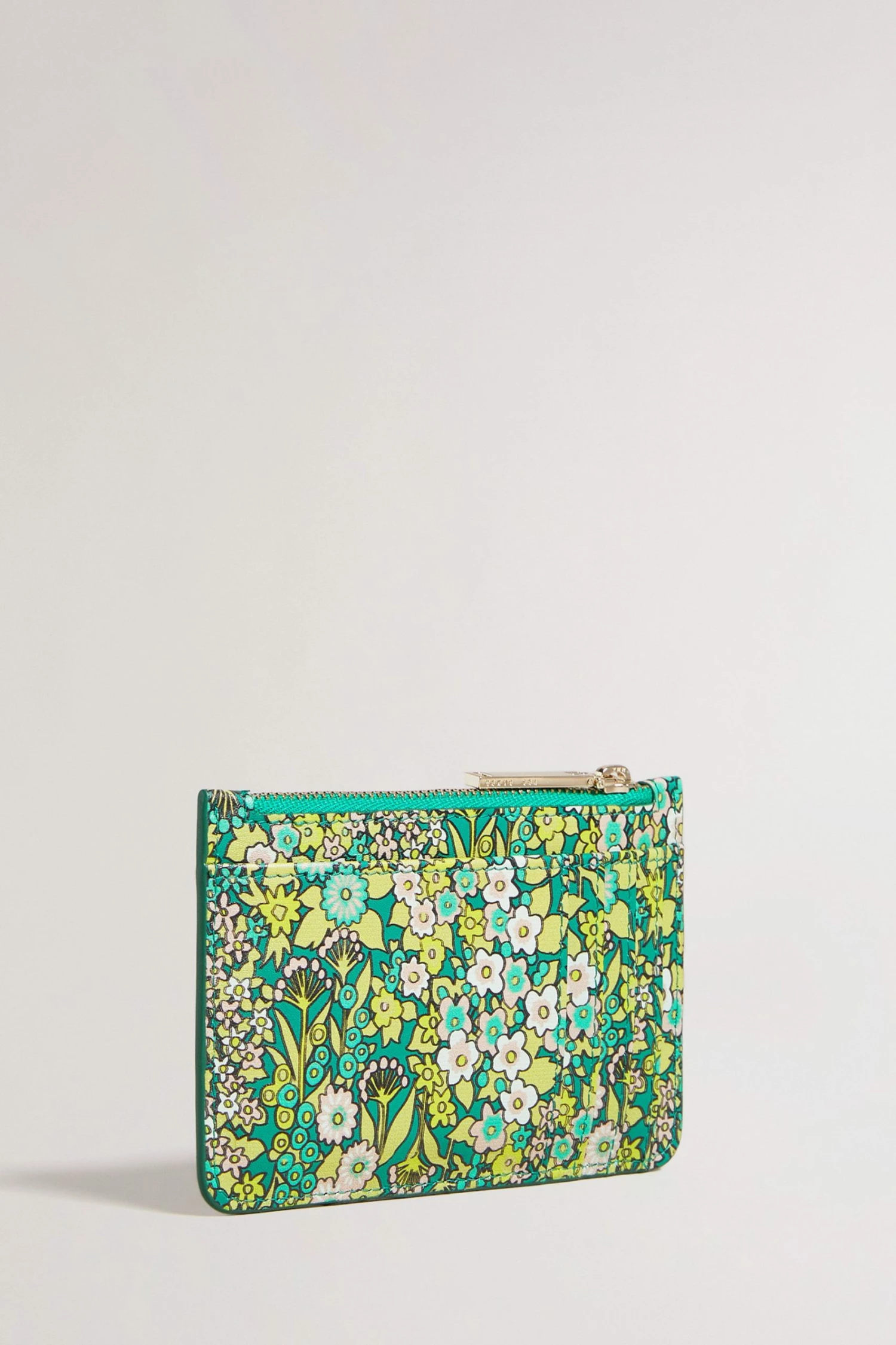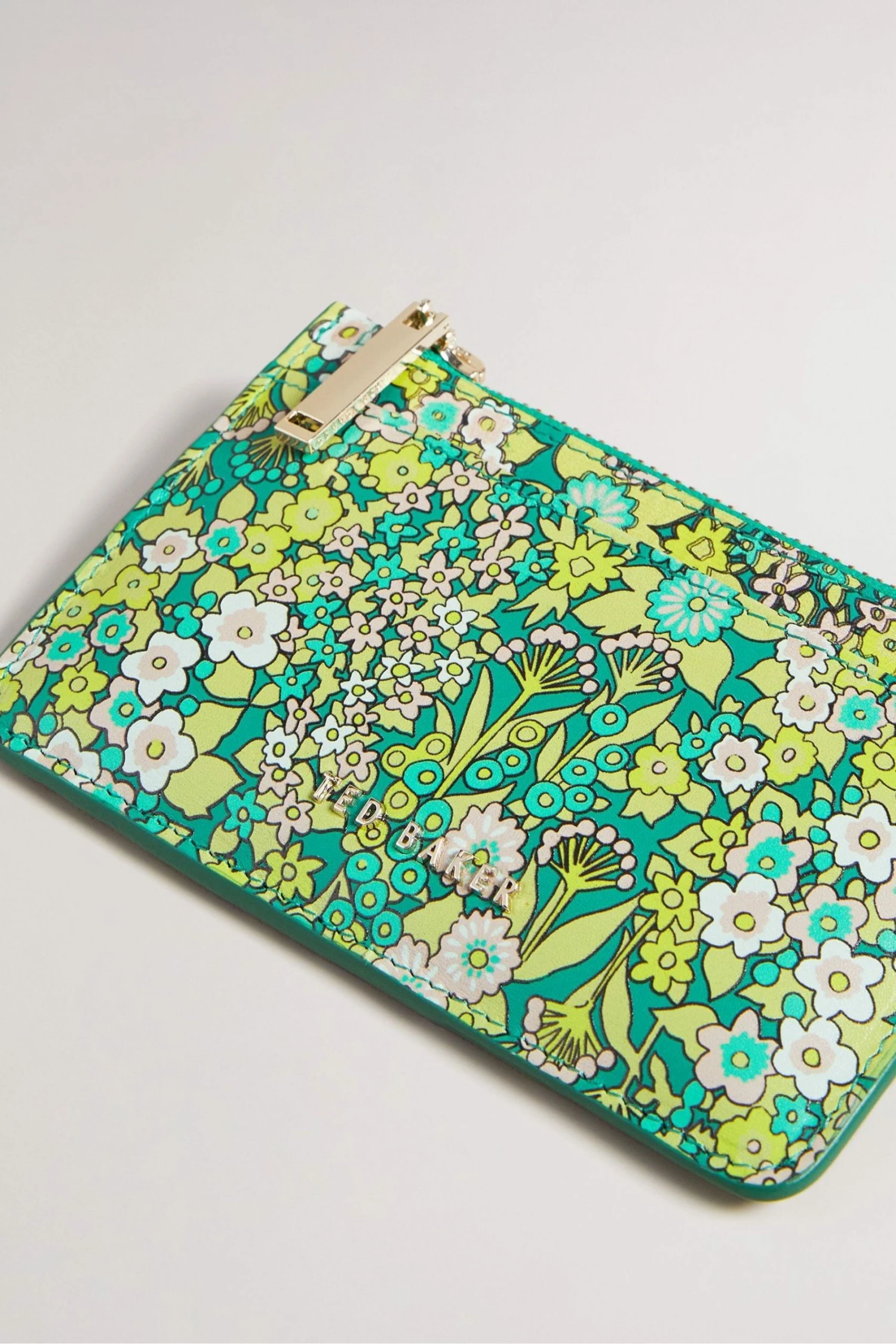 Bursting with iconic Ted Baker details, this Garcet card holder is designed with 100% Bovine leather. In a retro ditsy floral print, it features a card holder with zip closure and gold-tone hardware. Dimensions: 1.5cm x 7cm x 10cm.
