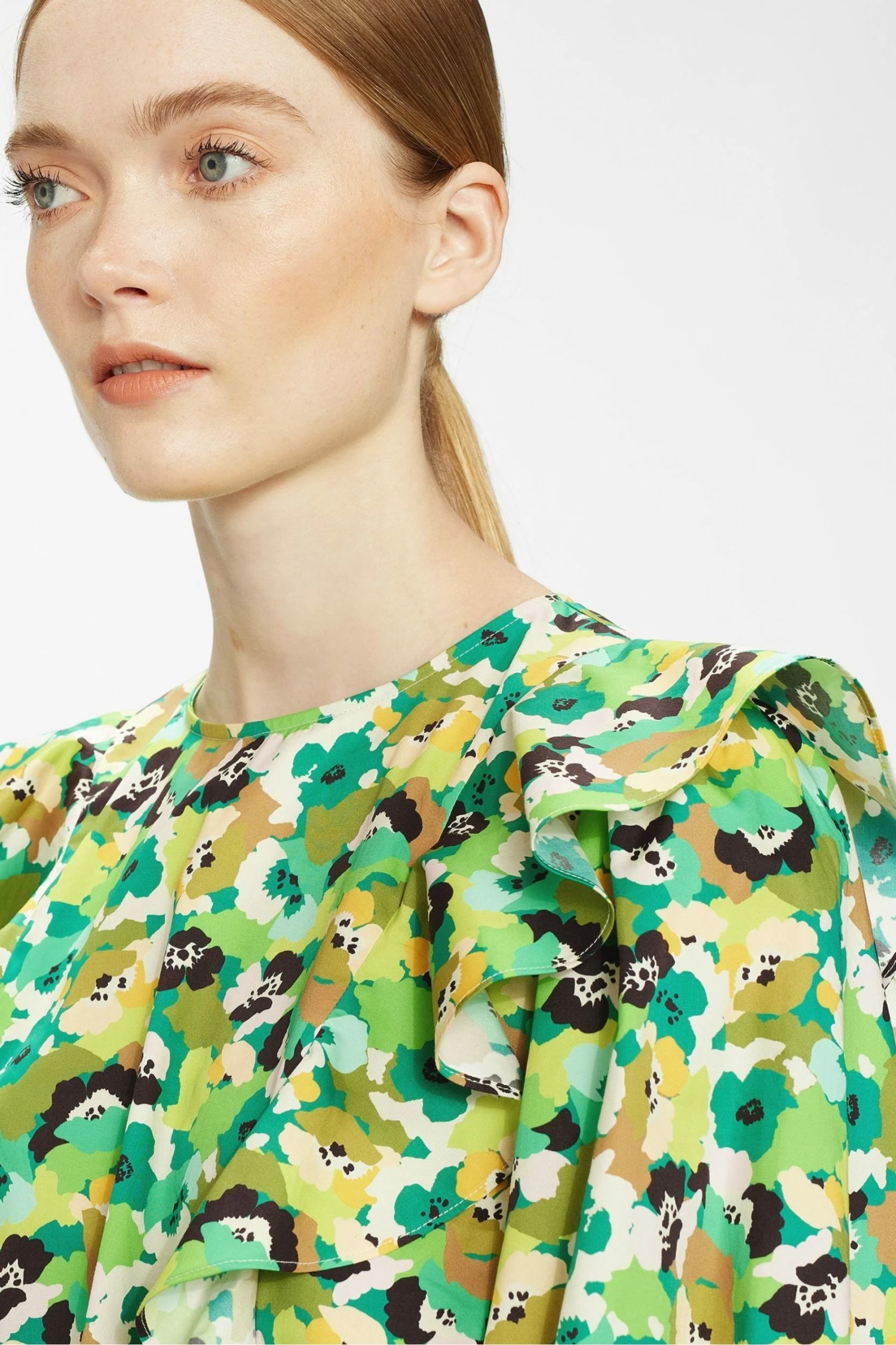 Ted Baker Green Gigie Printed Frill Shoulder Balloon Sleeve Top