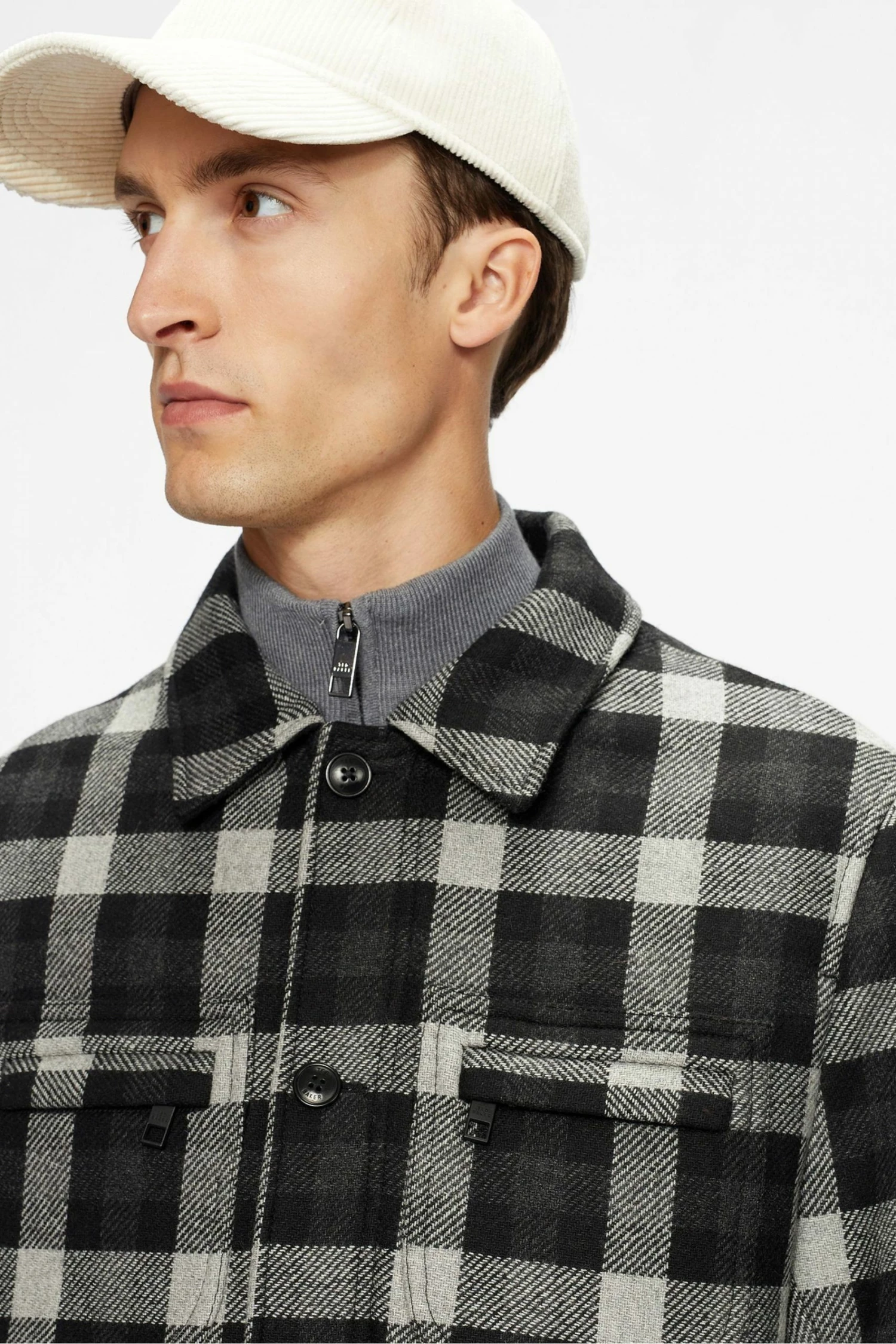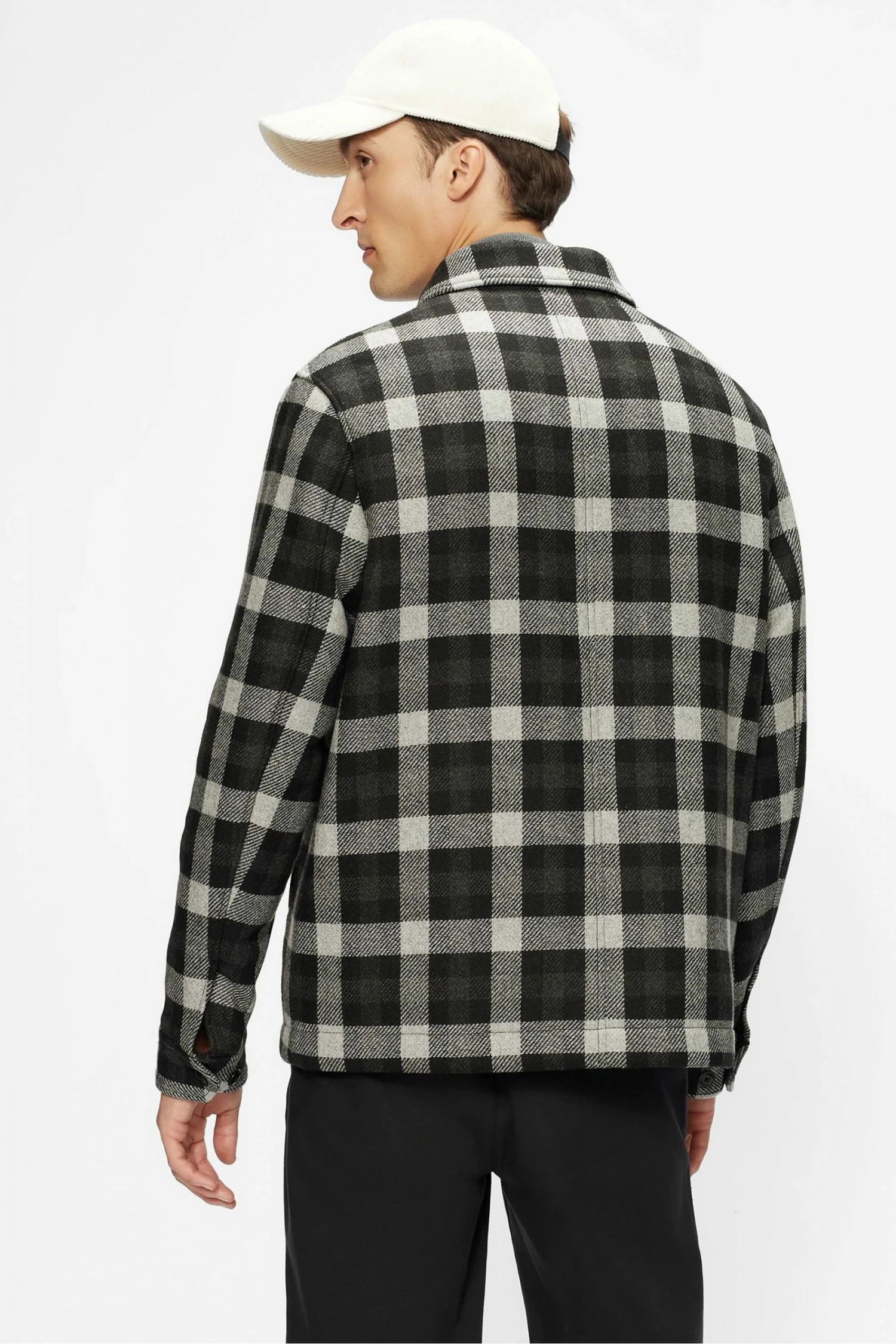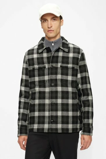 Ted Baker Grey Incline Checked Wool Wadded Overshirt
