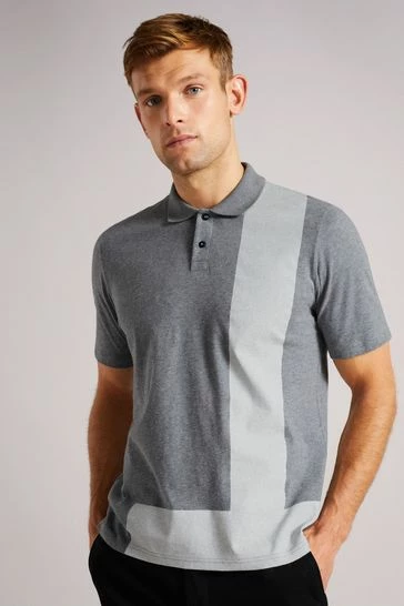 Ted Baker Grey Marl Chiping Short Sleeve ‘T’ Print Polo Shirt