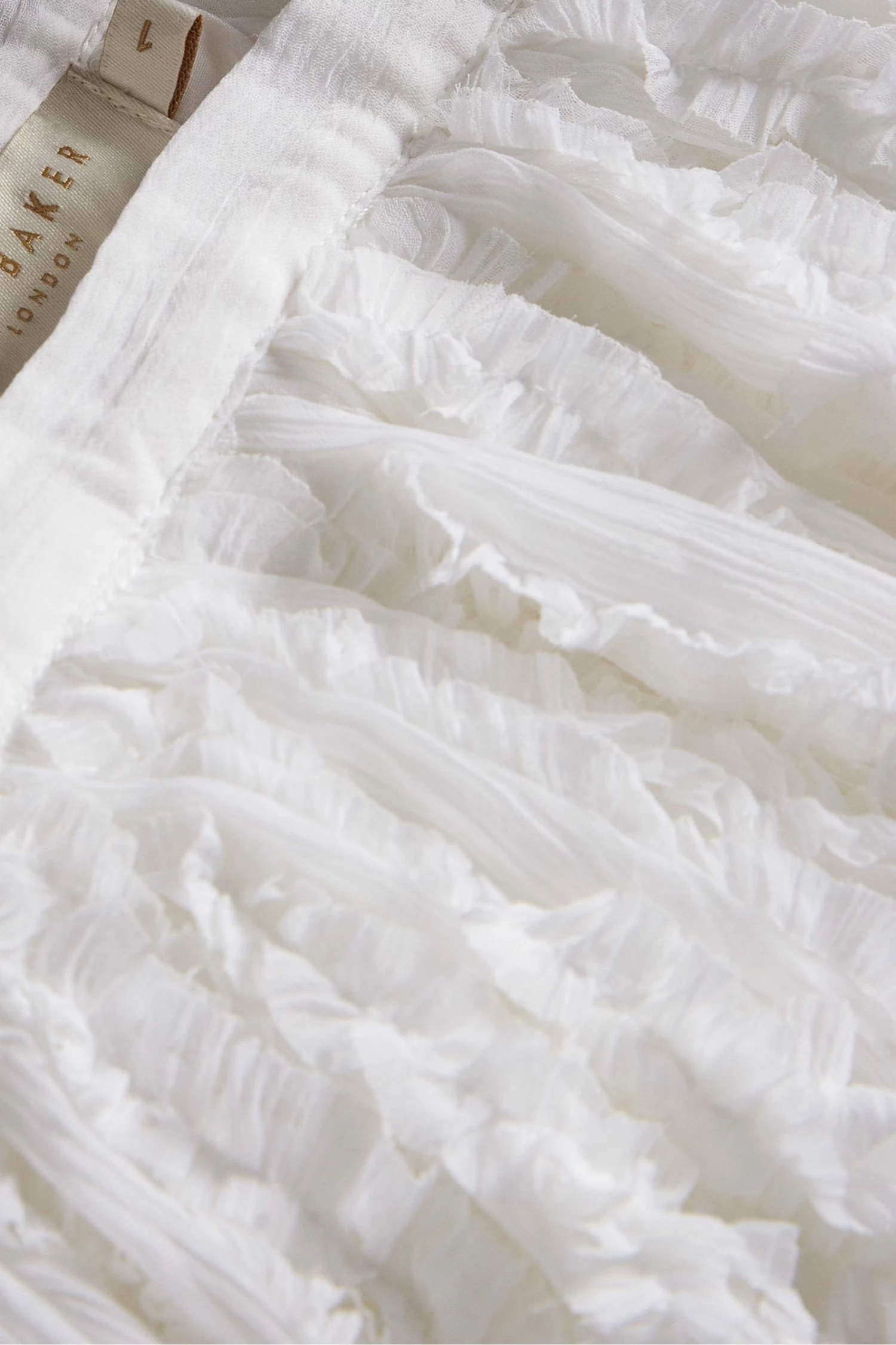 A pretty style for your wardrobe, this Halvy mini skirt is designed in a flattering A-line shape with micro ruffle details and textured elements. Finished with concealed fastening.