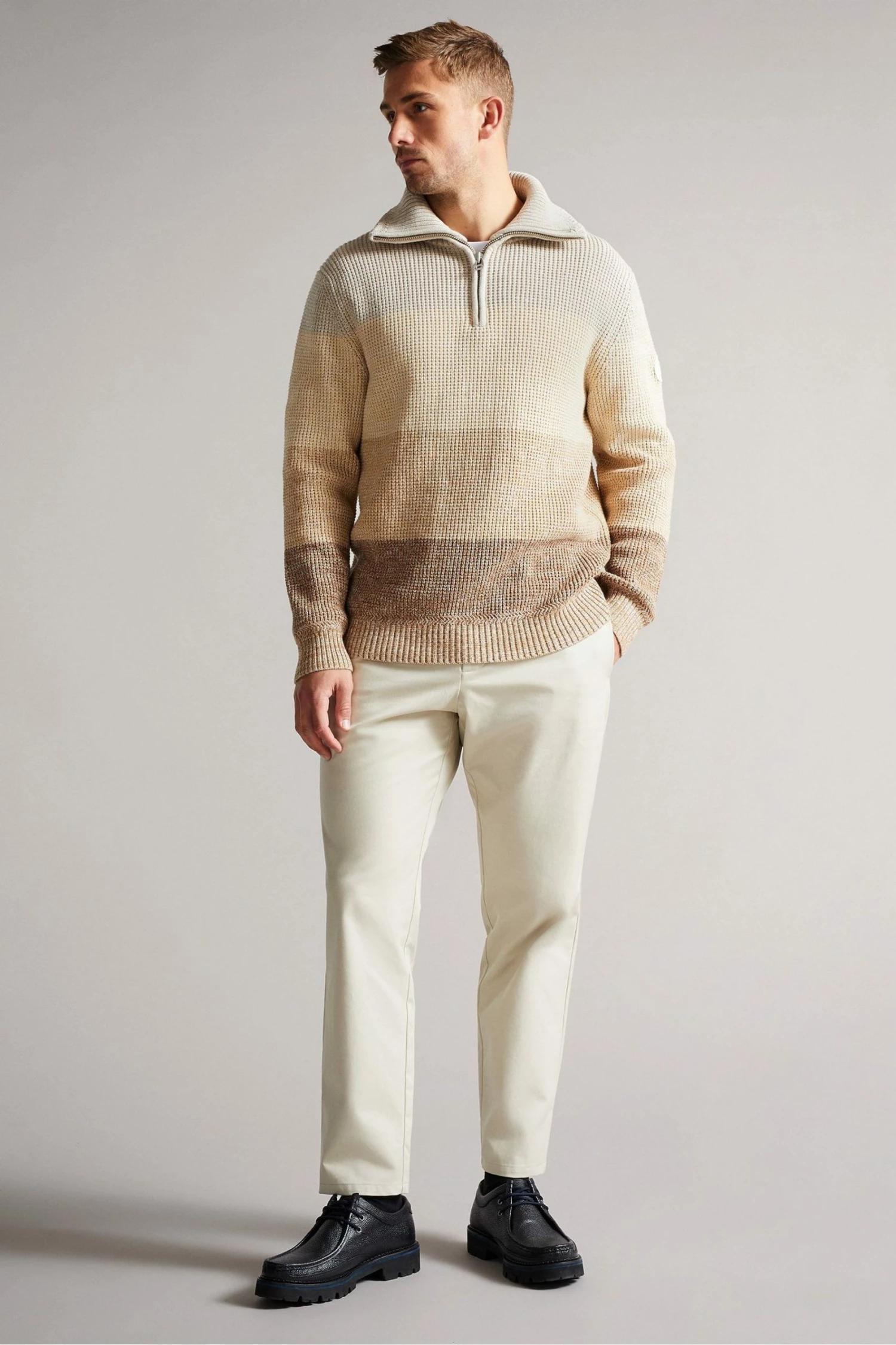 Ted Baker Heathh Tan Brown Mib Waffle Striped Knit Jumper
