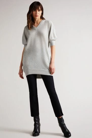 A stylish addition to your wardrobe, this Inula knit dress from Ted Baker is the perfect throw-on layer. In a dark grey colourway with a trendy v-neckline, gathered sleeves and ribbed details.
