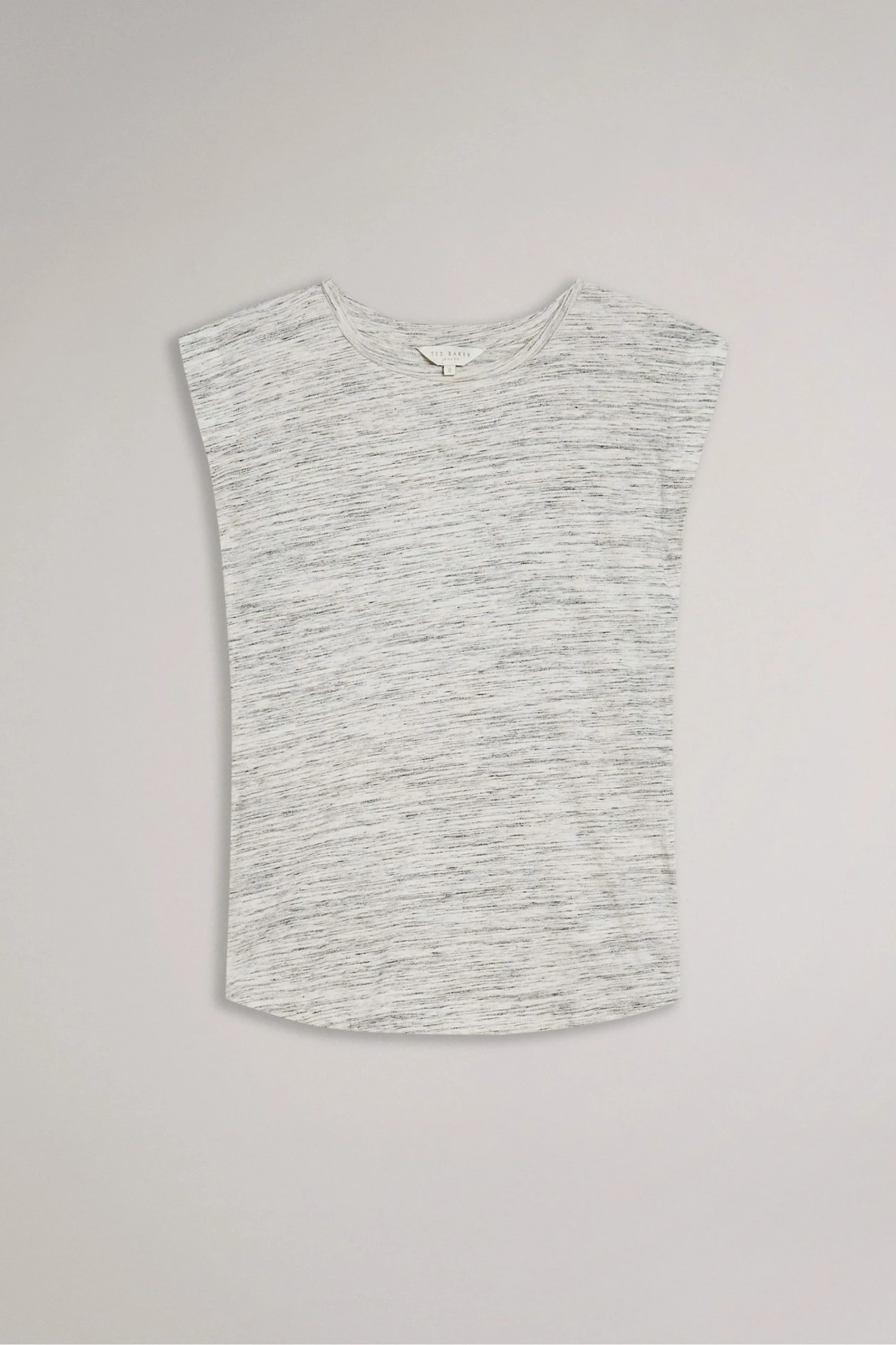 From Ted Baker, this white Julesa vest top has been designed with a narrow grown-on cap sleeve and rounded neckline. In a super-soft cotton base, this t-shirt has a space dye marl effect texture and is cut in a regular fit for comfort.