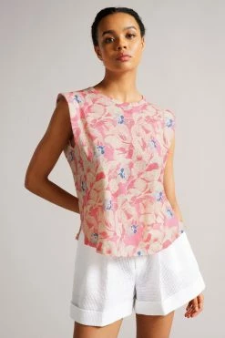 Ted Baker Kashaa Pink Shoulder Pad Linen T-Shirt