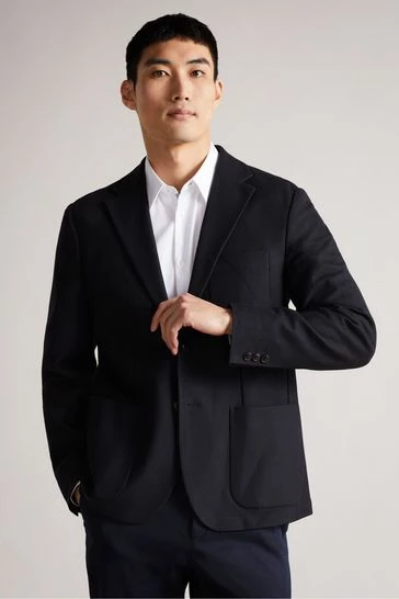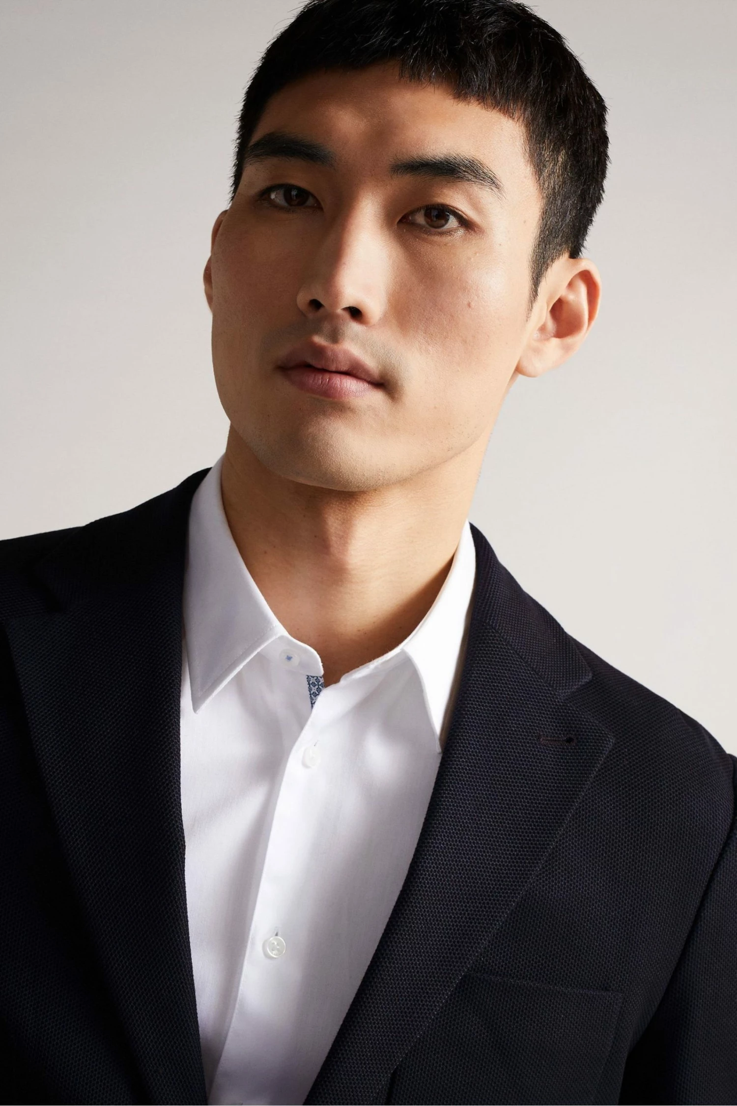 Ted Baker Kei Blue Long Sleeved Slim Fit Honeycomb Blazer