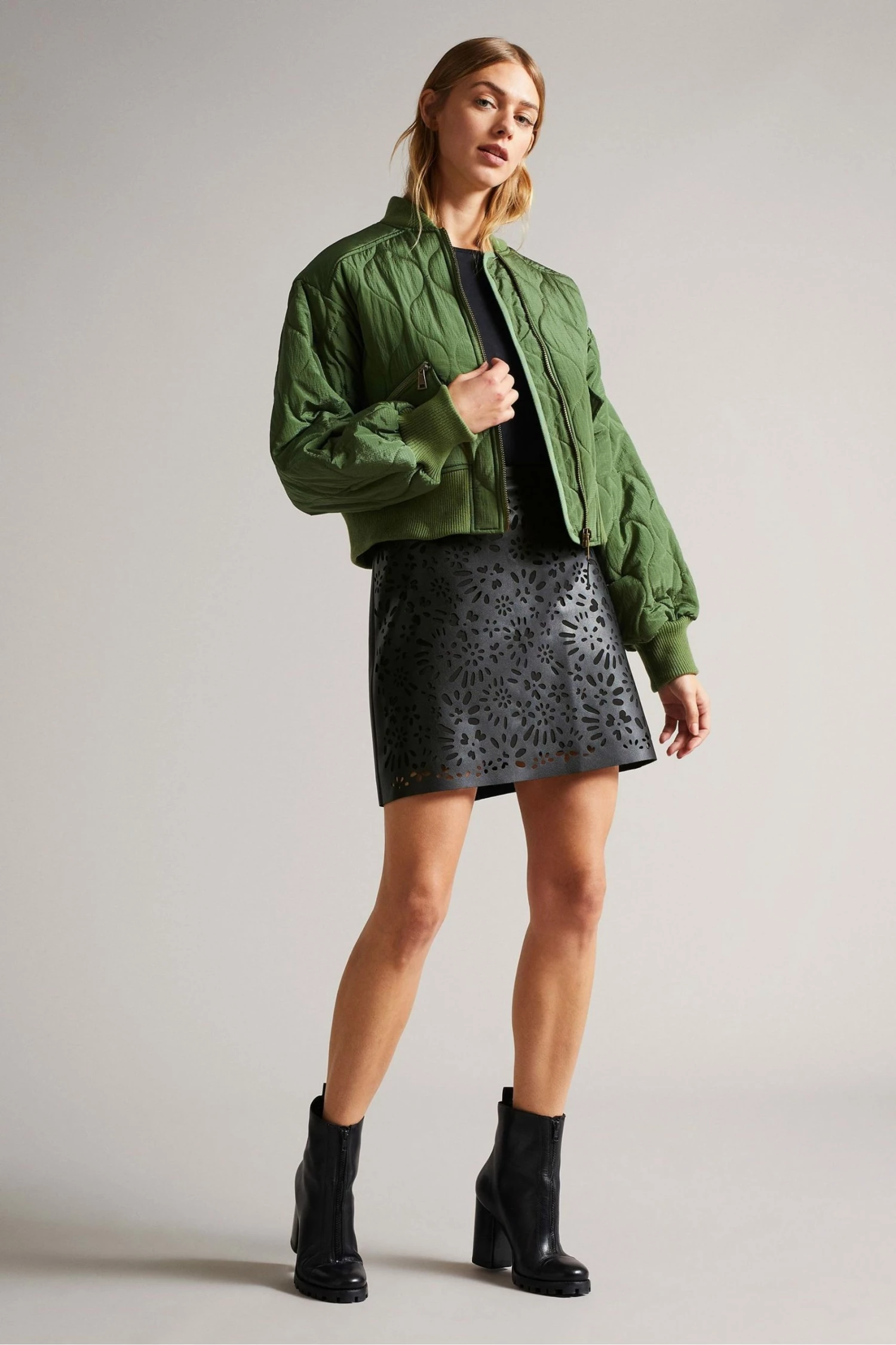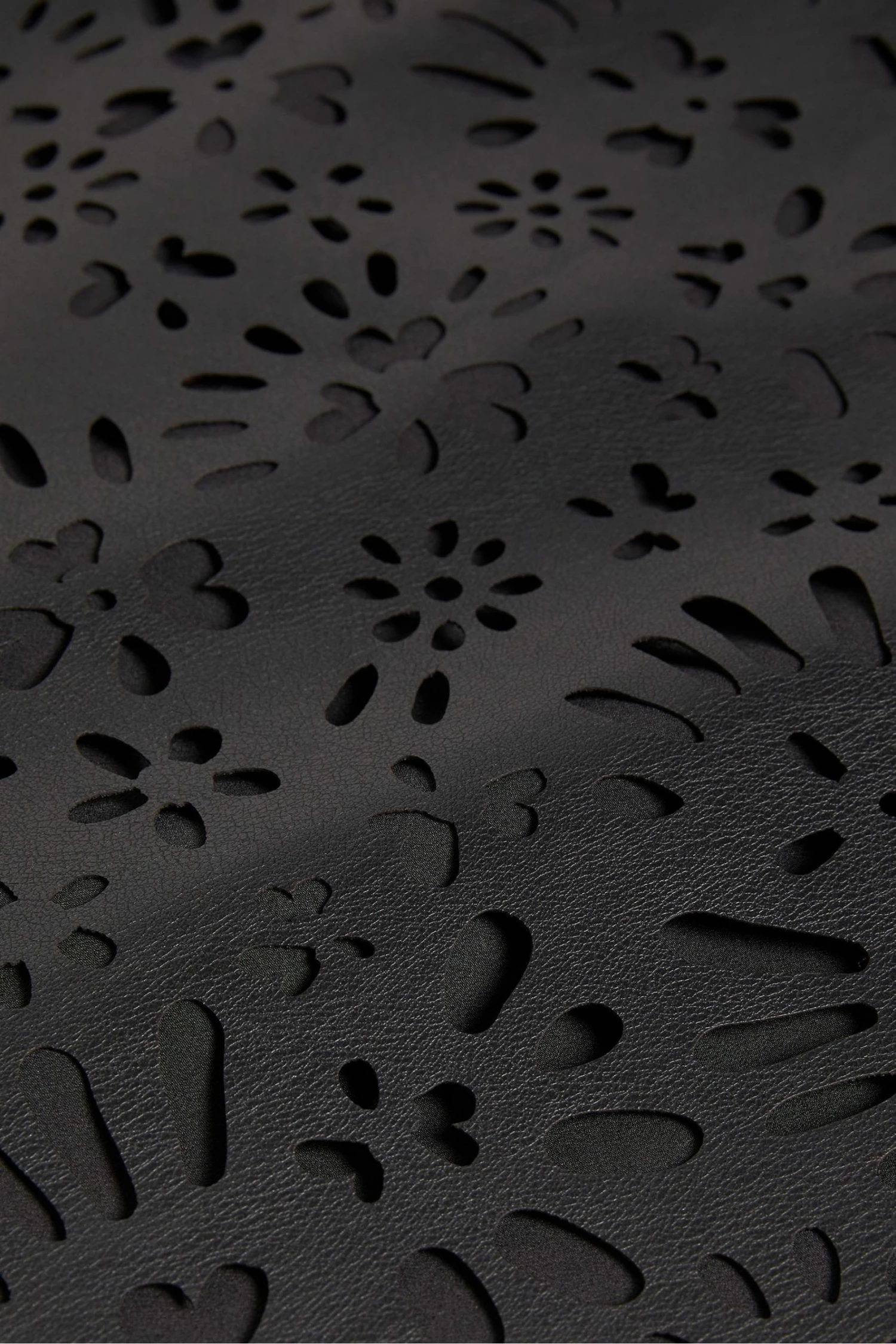 Feminine meets tough in the KEISS mini skirt. Crafted from sleek black pleather, it features a cut-out floral pattern for an elegant twist. Try teaming with ankle boots for a cool day-to-evening look.