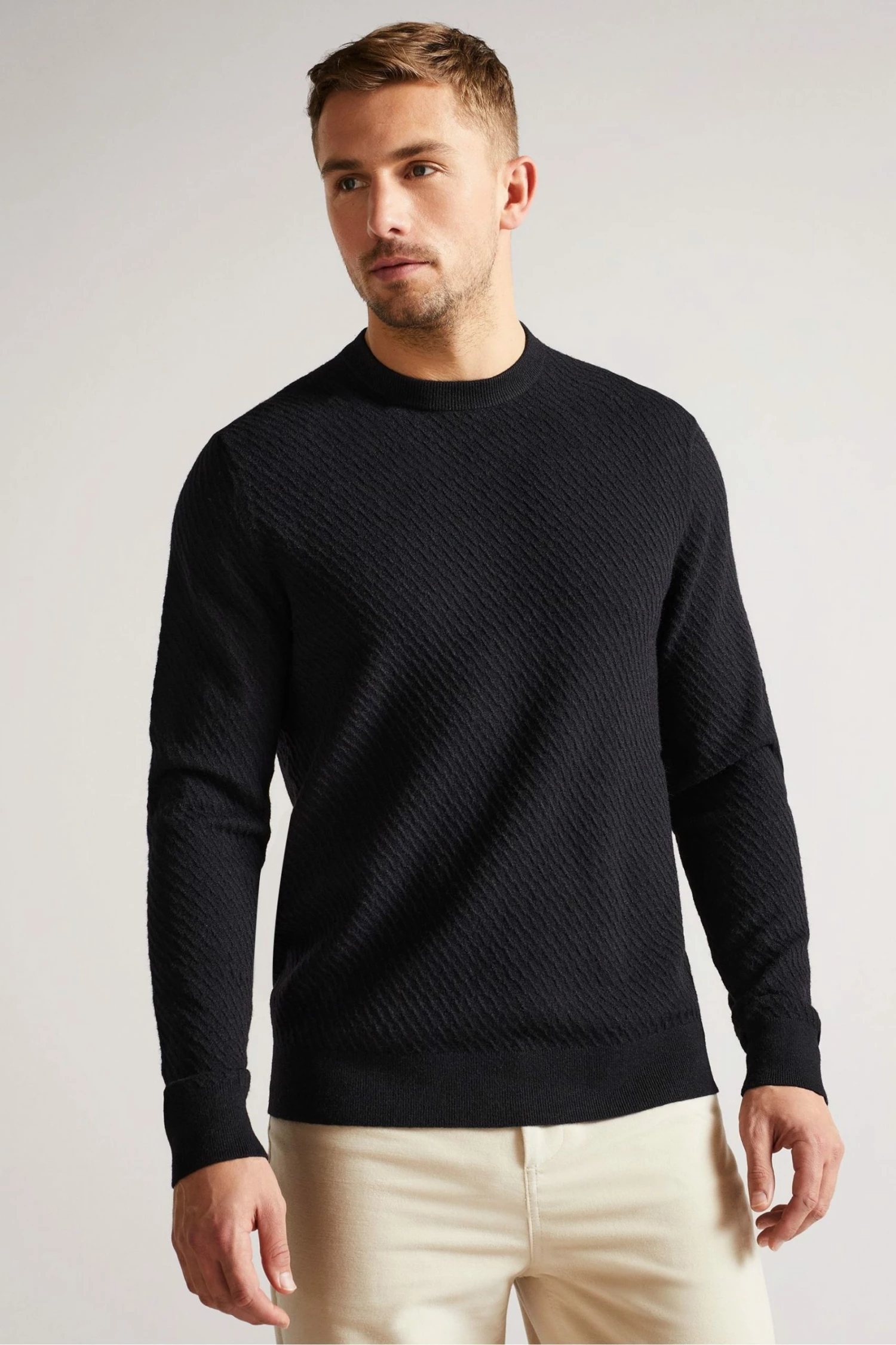 Ted Baker Knares Navy Textured Crew Neck Blue Jumper