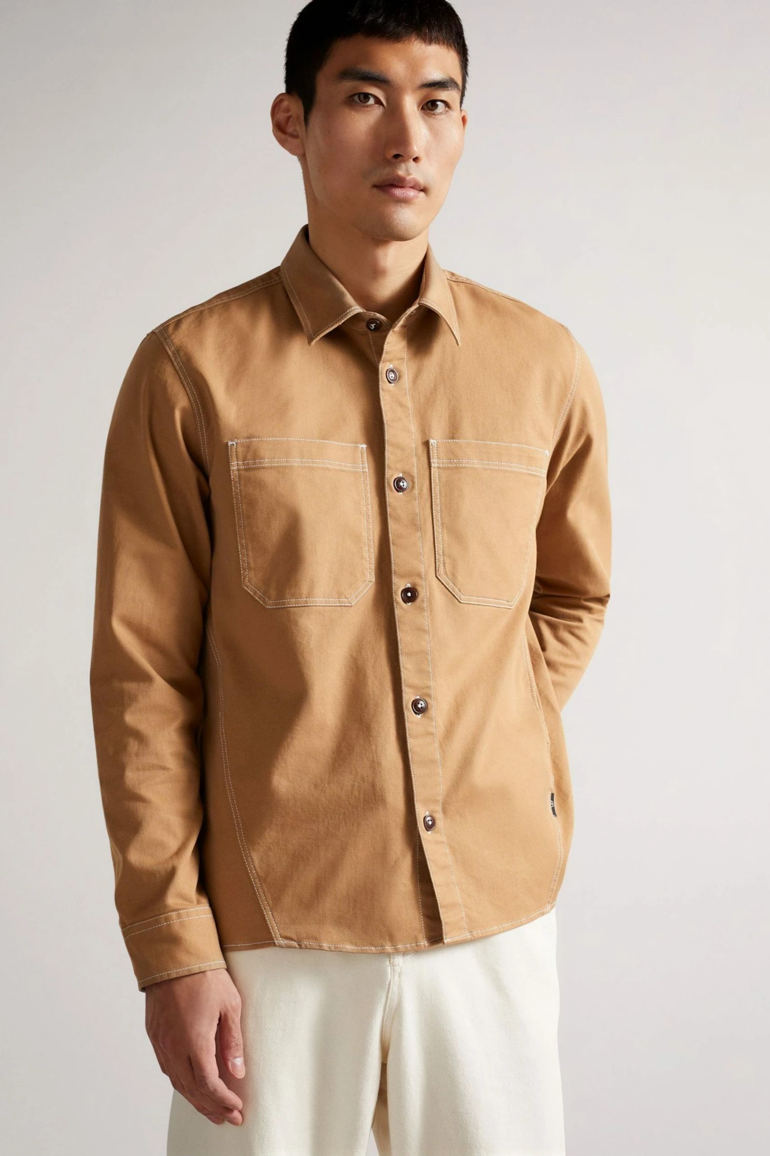 Perfect for the warmer weather where an extra layer is still required. This Ted Baker shacket features a button up fastening, collar, long sleeves and chest pockets in an all over slim fit wit stitching details. Perfect for pairing with some simple jeans and trainers to elevate your look.