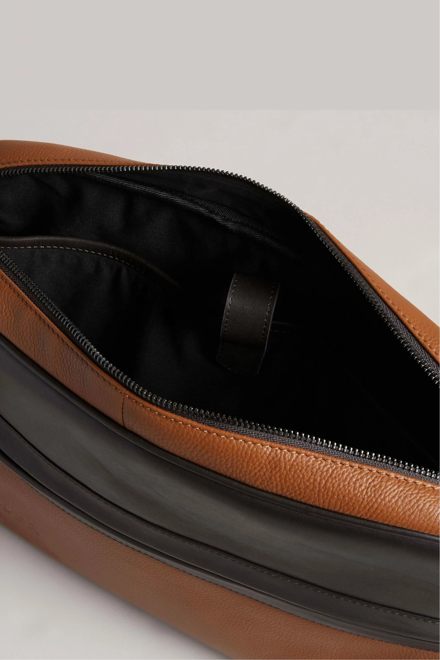 Office, University or school, this bag is for them all. Designed by Ted Baker, this messenger bag is made with leather and features the Baker branded print on the face of the bag. A zip up compartment is spacious to store your technical belongings, files and books in safe and securely. An extra zip up front pocket is available to store your stationary or mini essentials in.
