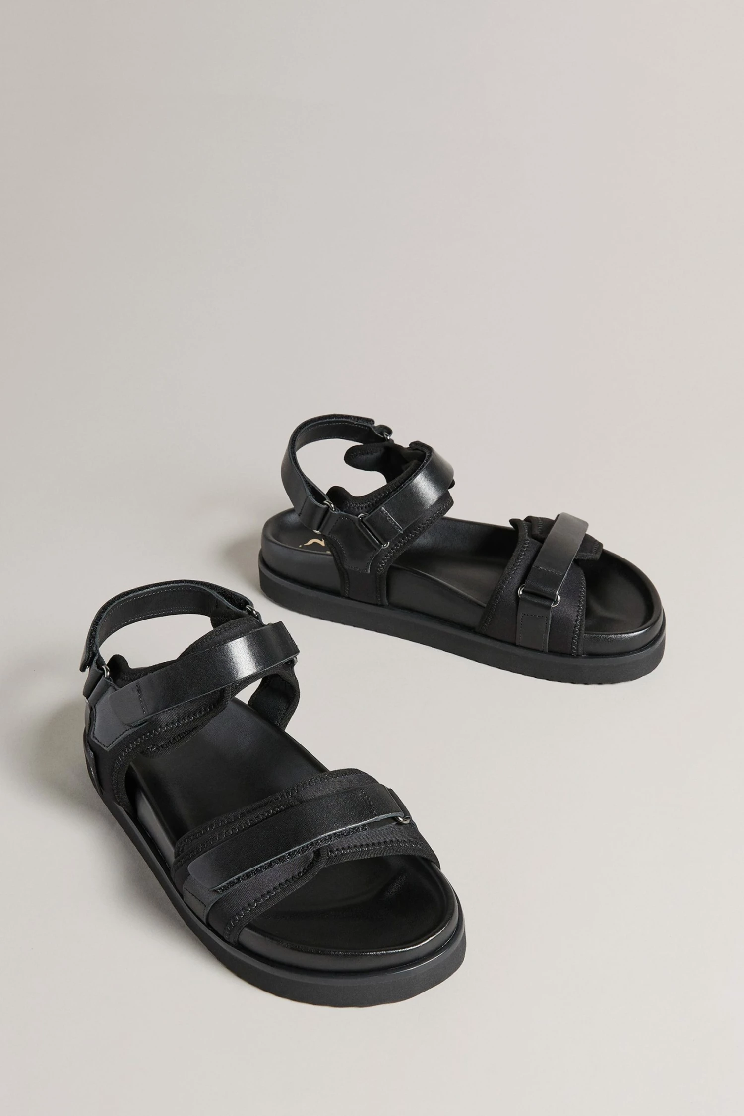 A sporty style that s sure to see some serious rotation in your wardrobe. These Nalha sandals are designed with leather panels, moulded sole, velcro straps and Ted Baker branding.