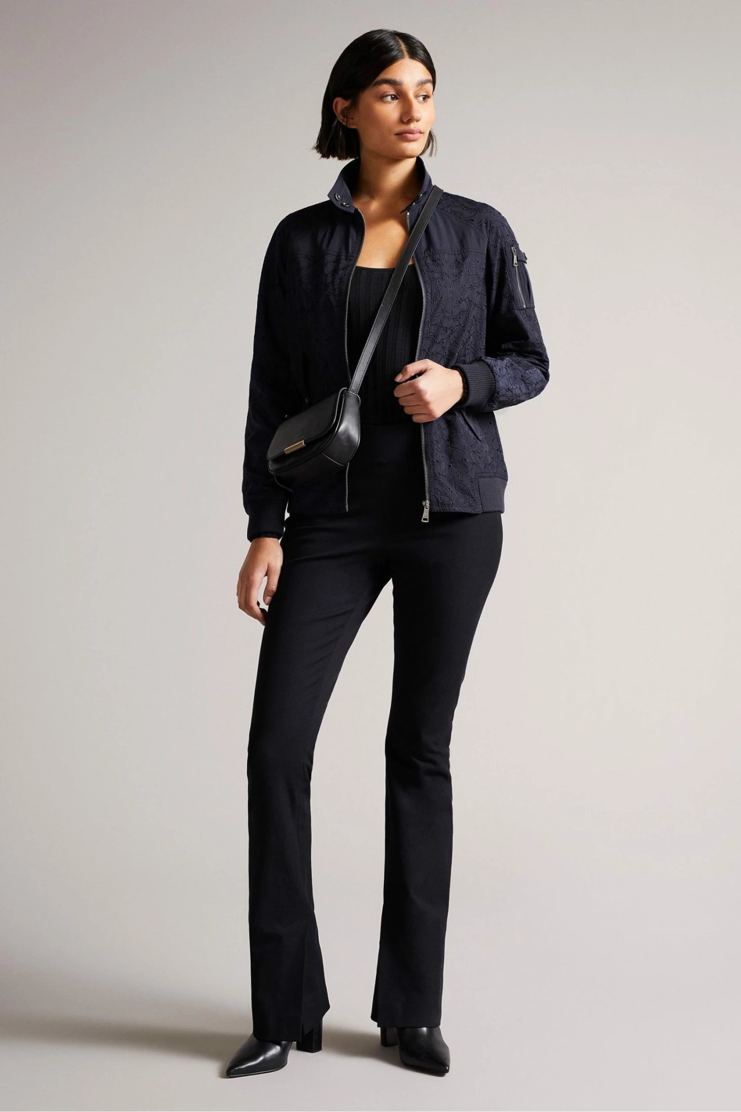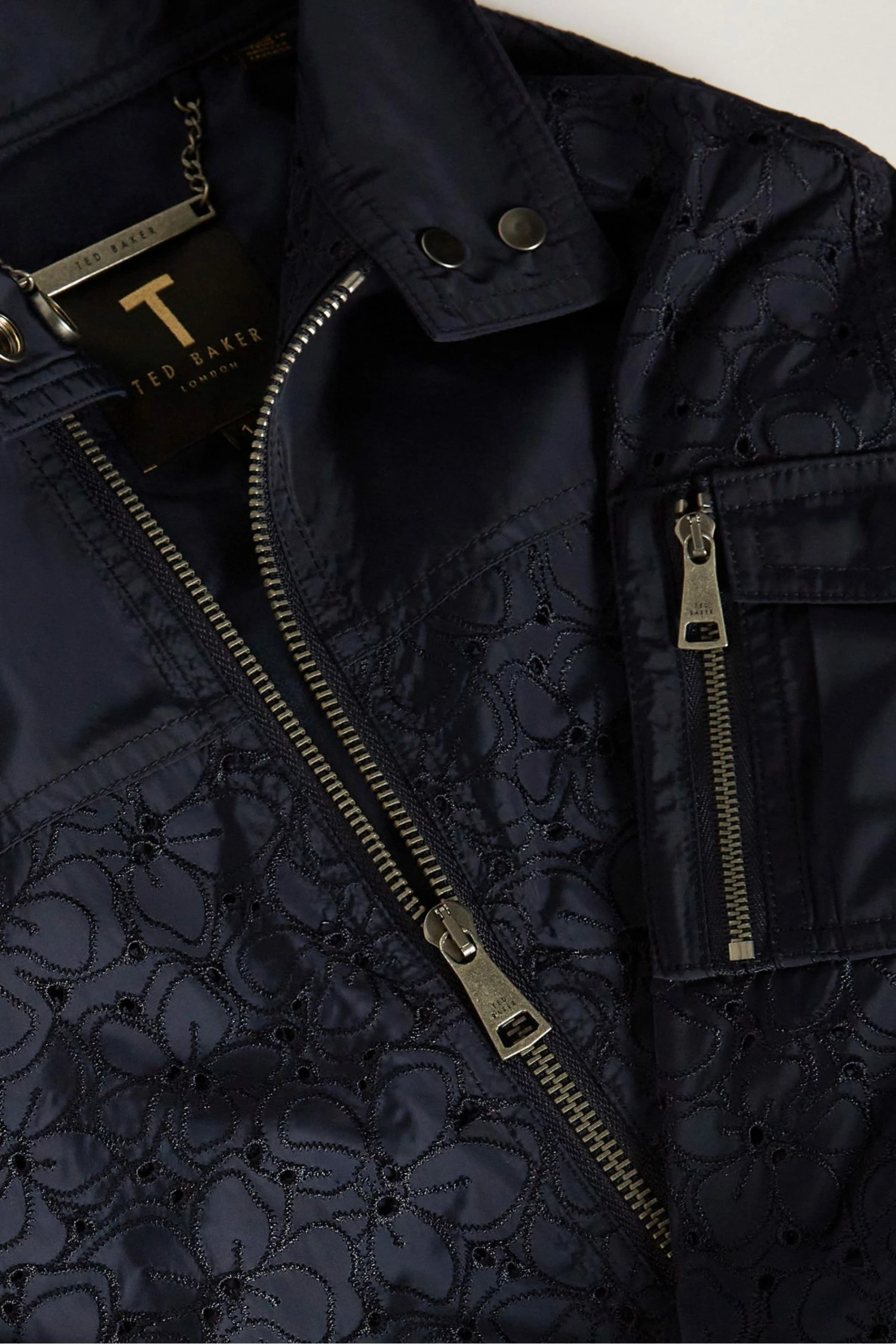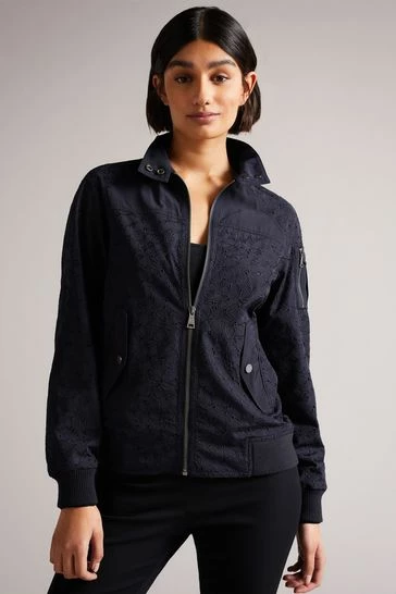 A laid-back style for your wardrobe, this Larsine jacket from Ted Baker is designed with coated lace detail. Featuring zip front, zipped arm pocket and two-button closure pockets. Finished with ribbed details and Ted Baker branding.