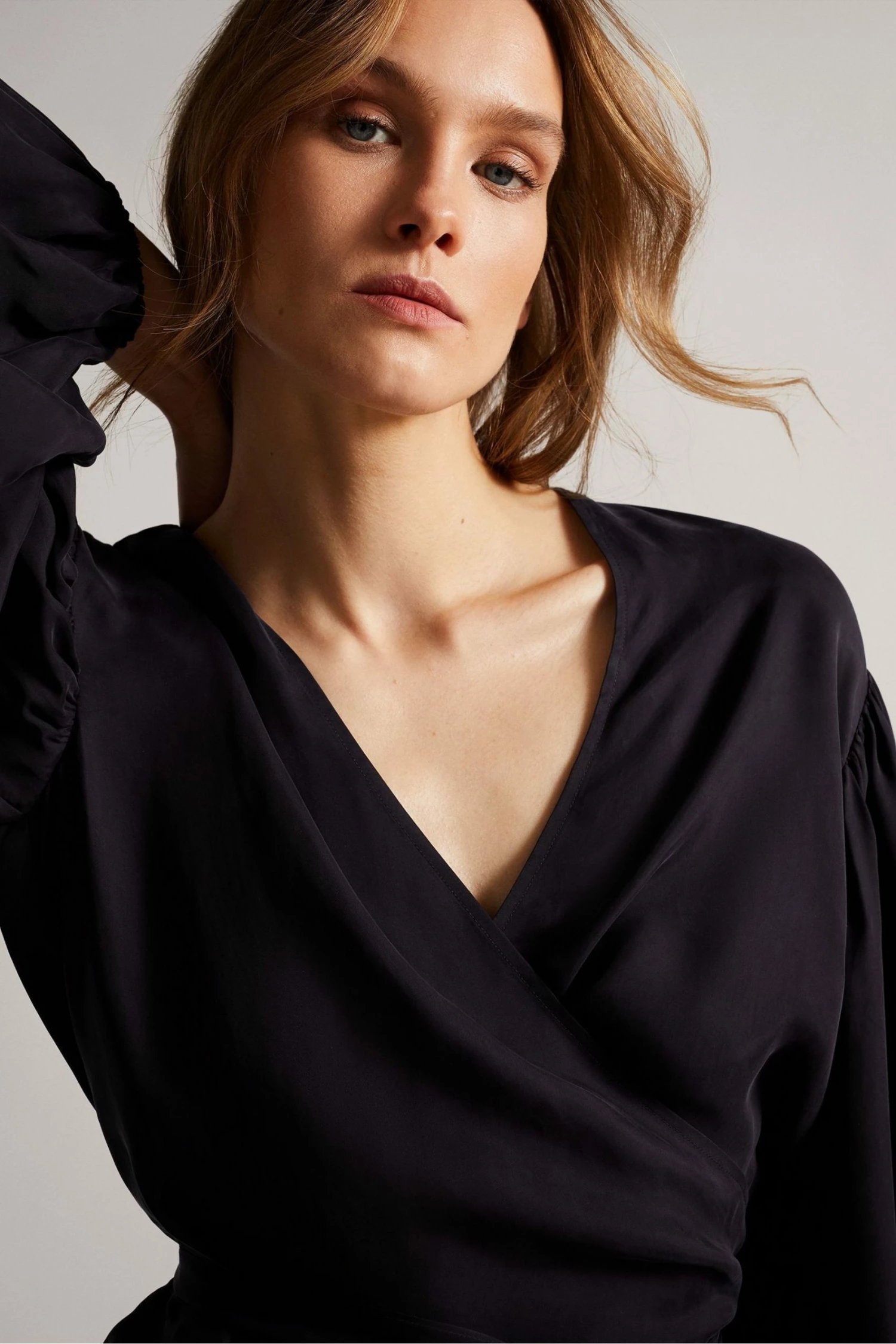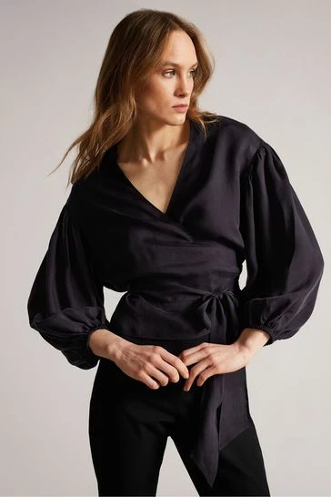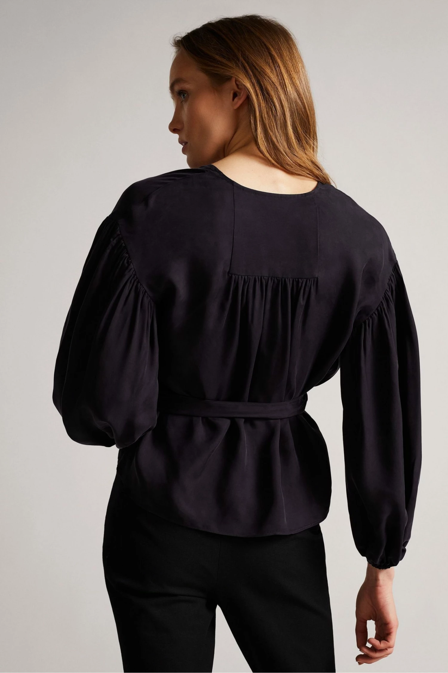 Ted Baker Navy Blue Ralda Wrap Top With Blouson Full Sleeve