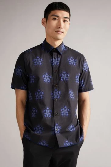 Ted Baker Paden Black Ss Floral Printed Shirt