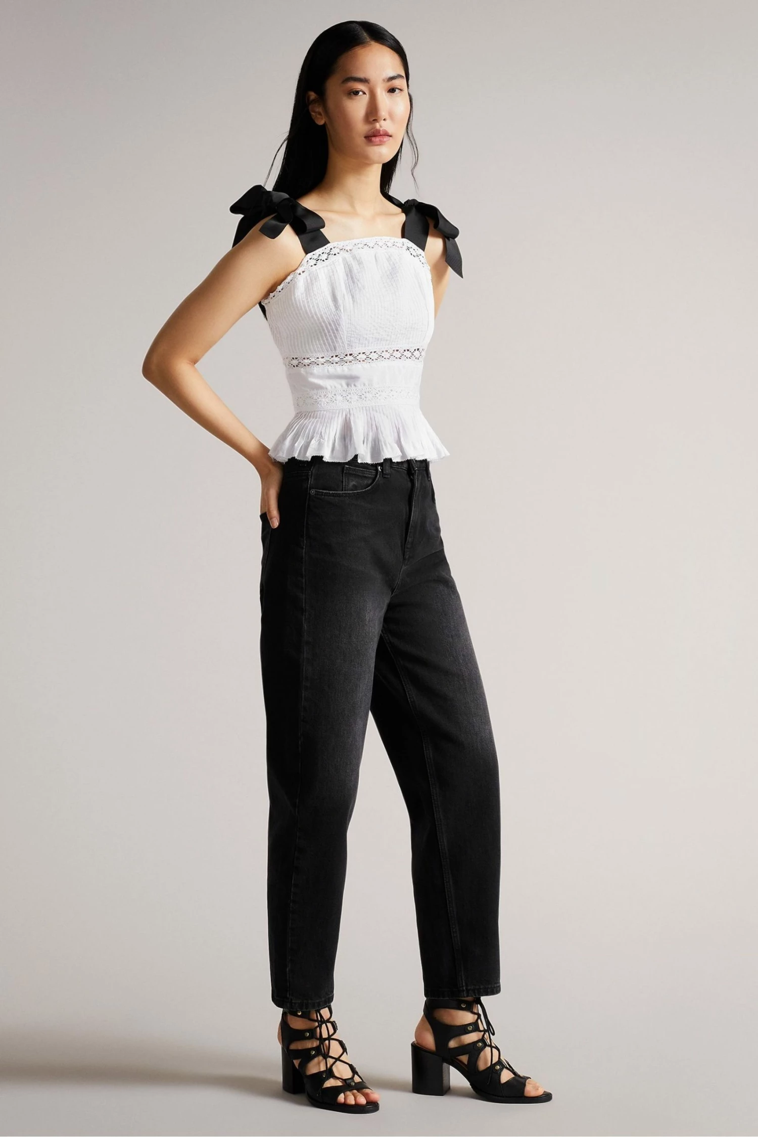 Add some style to your wardrobe with this Pietri top from Ted Baker. In a cotton-rich blend with peplum details, lace insert and tie ribbon sleeves. Complete with pleated hem and side zip fastening for easy dressing.