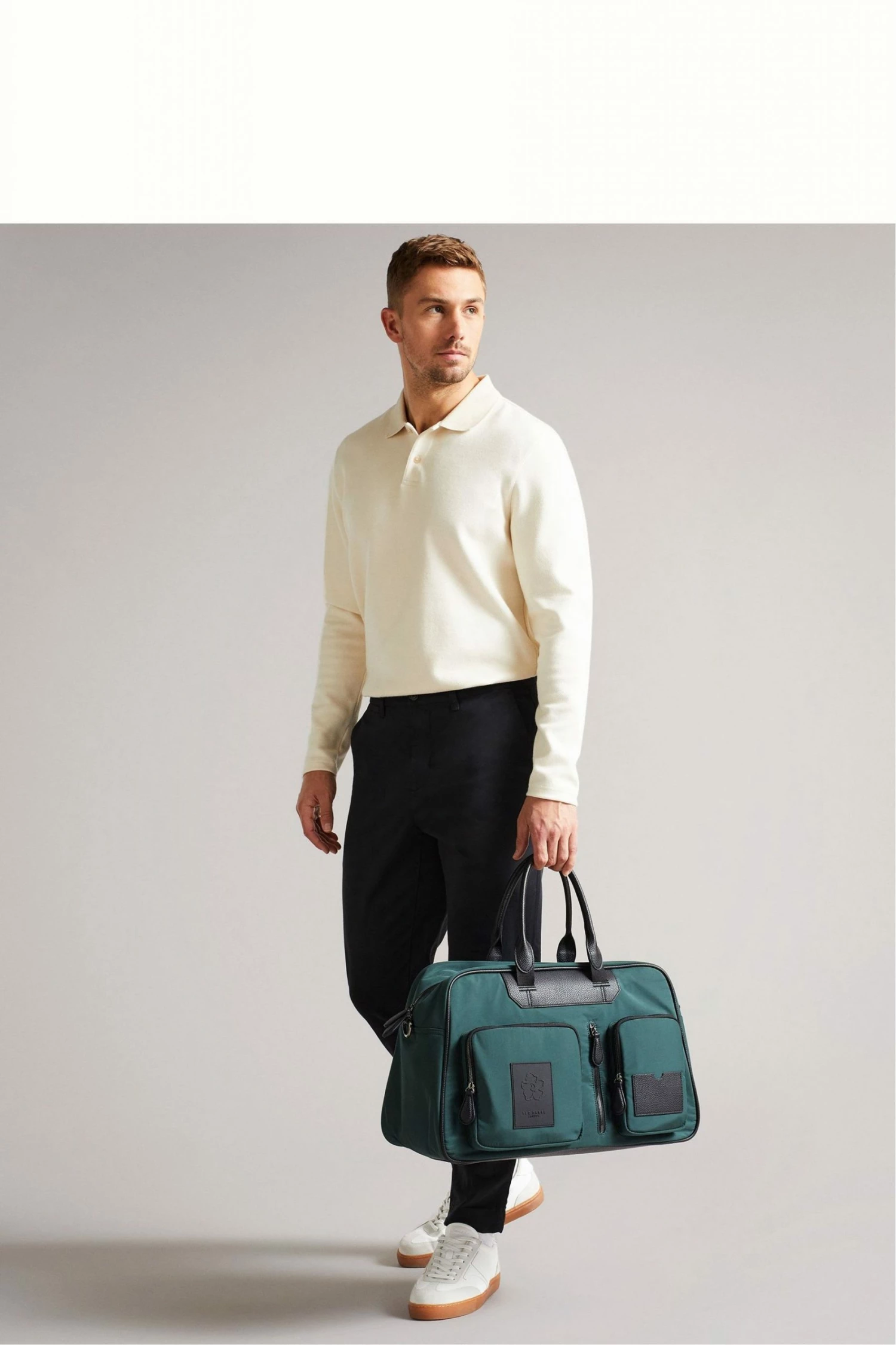This stylish holdall from Ted Baker is the perfect accessory for travellers and gym goers alike. This fully lined holdall features a spacious interior, simple zip top fastening, three exterior zip pockets, adjustable and removable cross-body strap, carry handles, interior zipped pocket and Ted Baker branding.