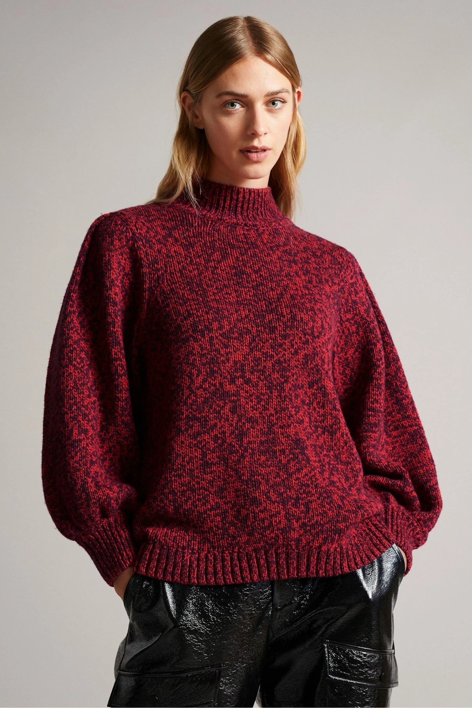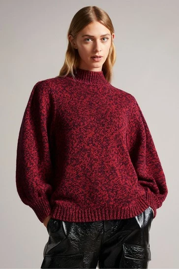 Ted Baker Red Elvinaa Pleat Sleeve Cropped Sweater
