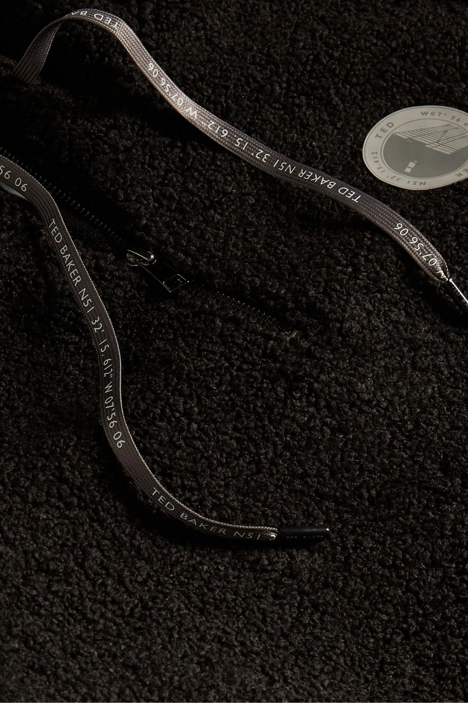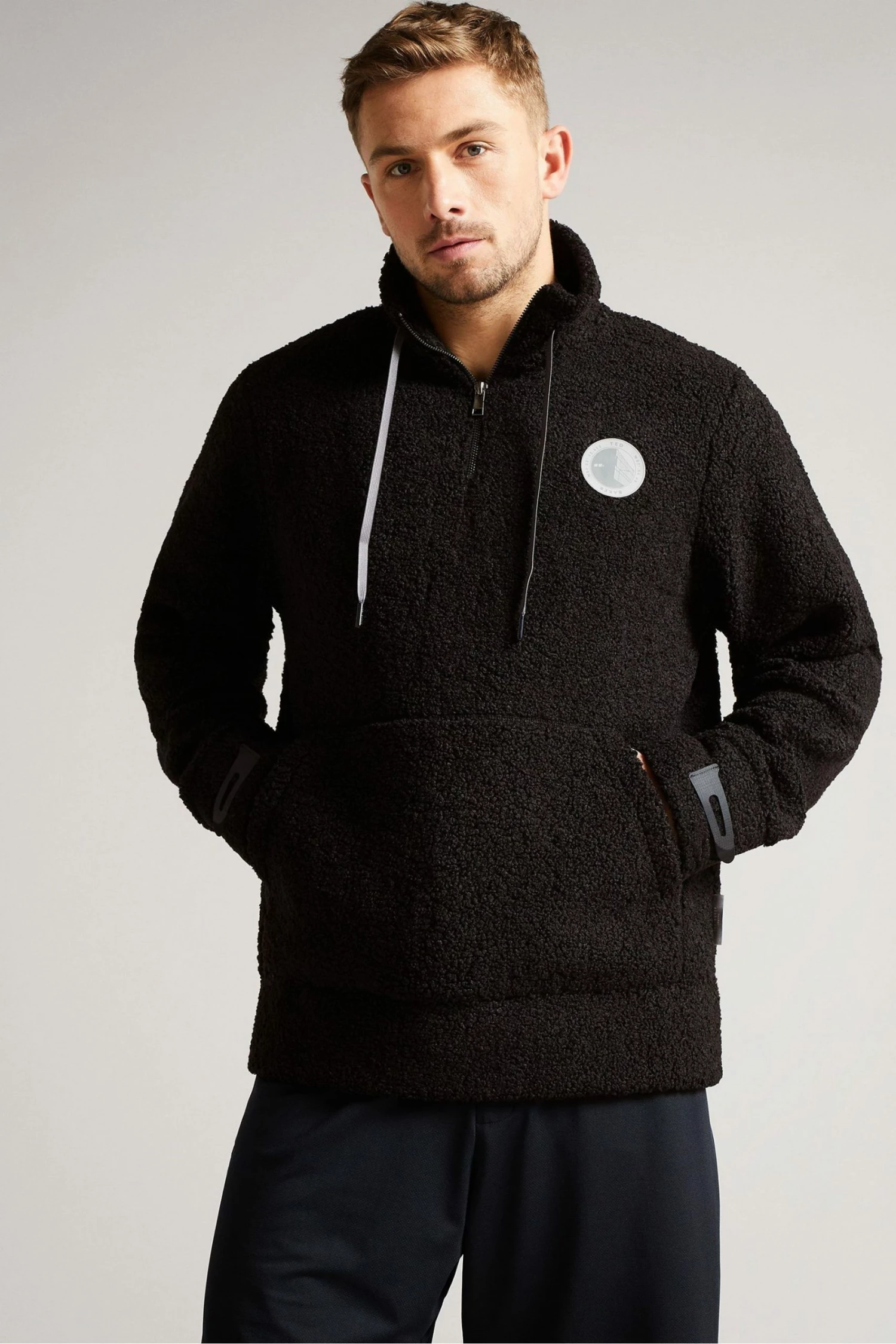 Layer up in style on the colder days wearing this half zip up fastened top by Ted Baker. Made with textured fabric all over, this top is fitted with a drawstring collar that is lined with the official Baker branding. Side pockets are also embedded to easily store all your mini essentials in along with a silicone Ted Baker print on the chest for added style.