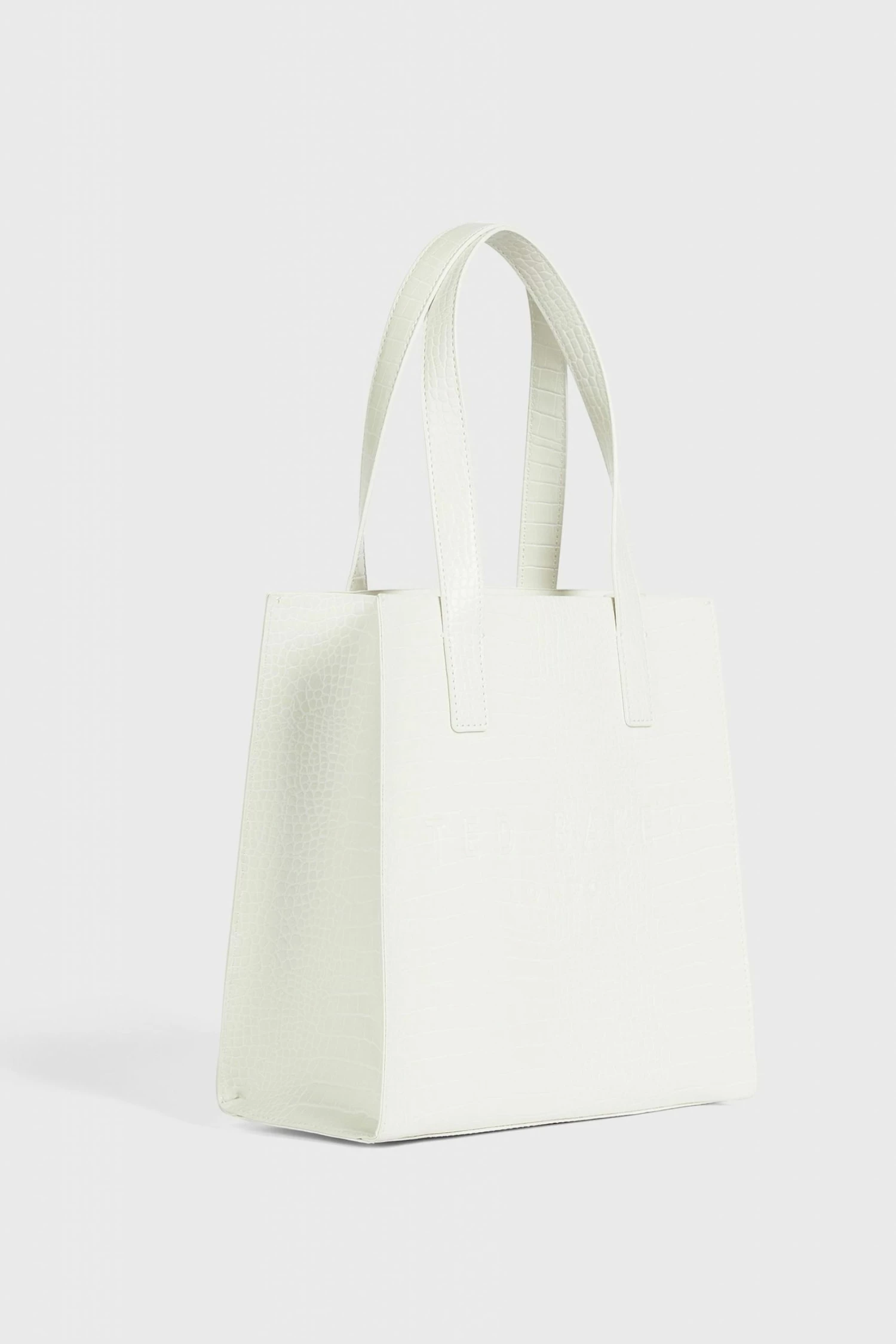 Be sure to snap up the latest in our Ted Baker branded bags, the REPTCON, the croc detail small icon bag. This tote shape will give you a modest amount of room for all that precious cargo without compromising on style; coming in a smaller size, this sweet bag will be the finishing touch to any outfit.