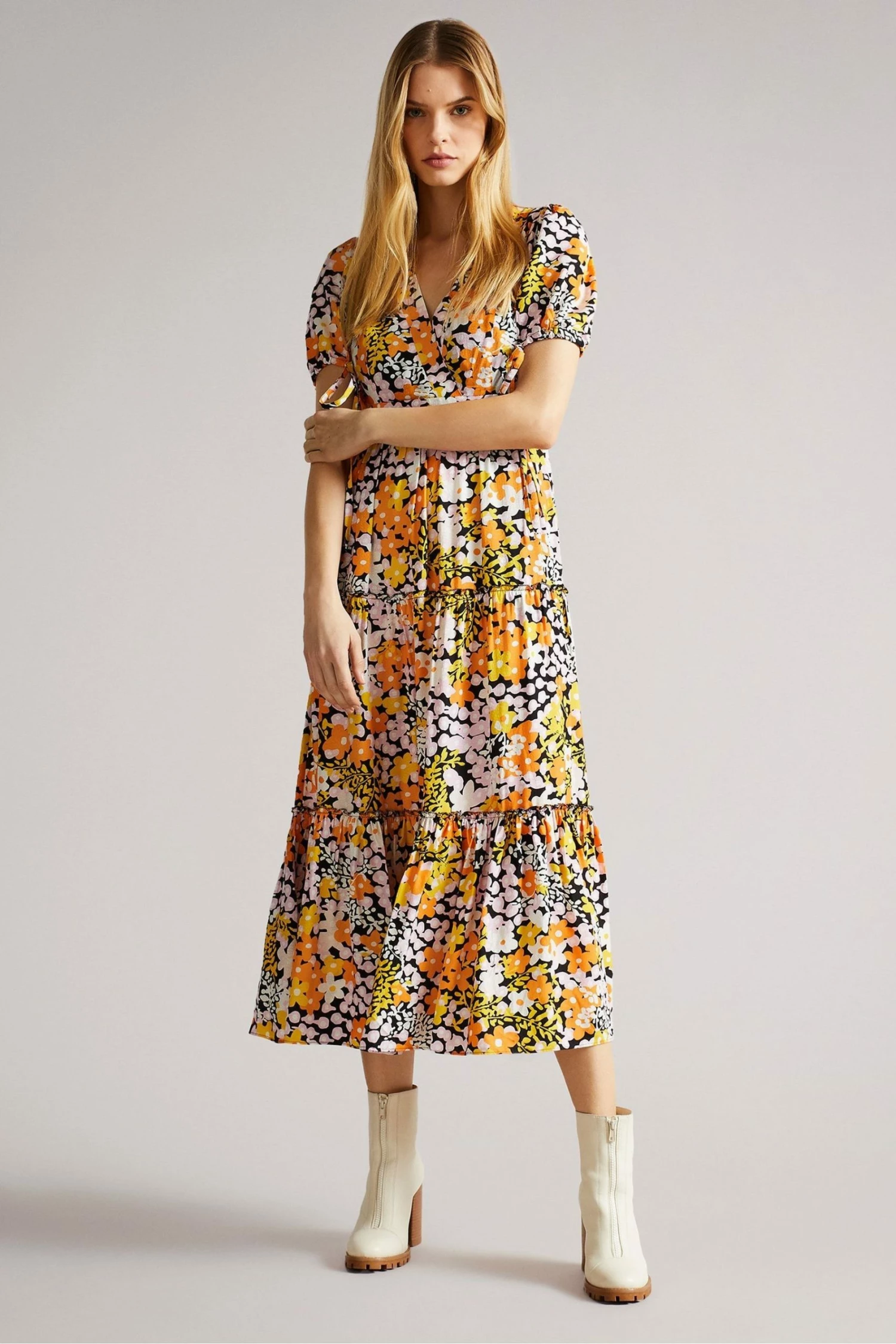 Ted Baker Safiree Black Printed Tiered Midi Dress