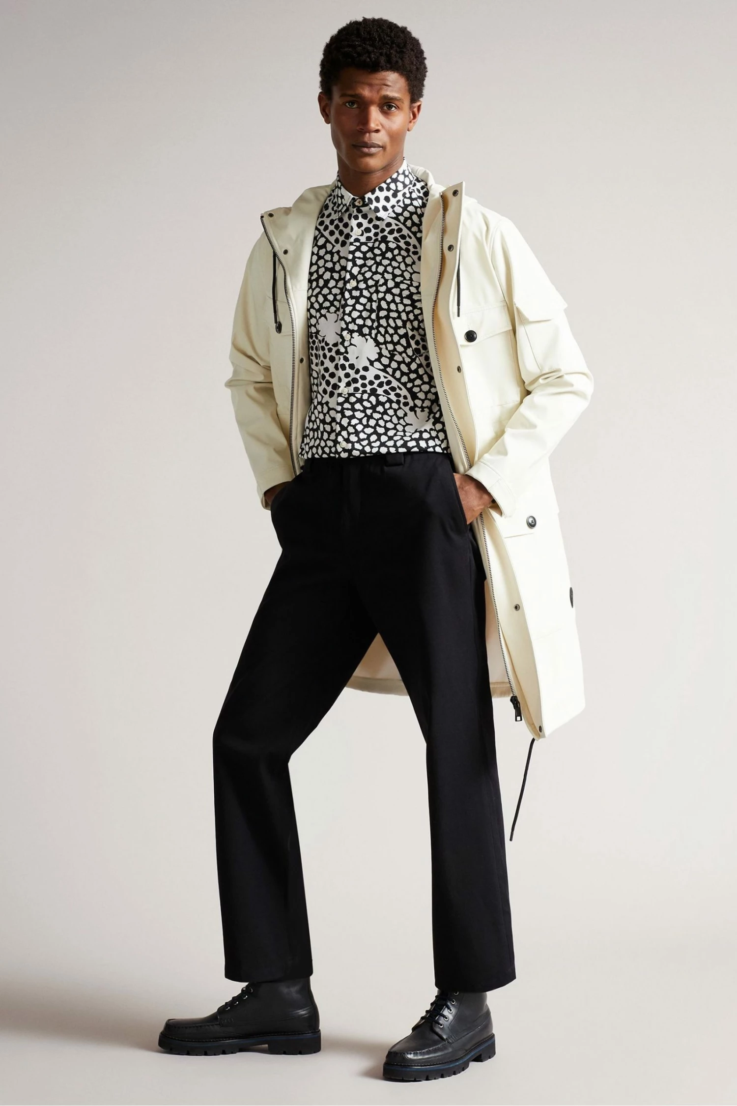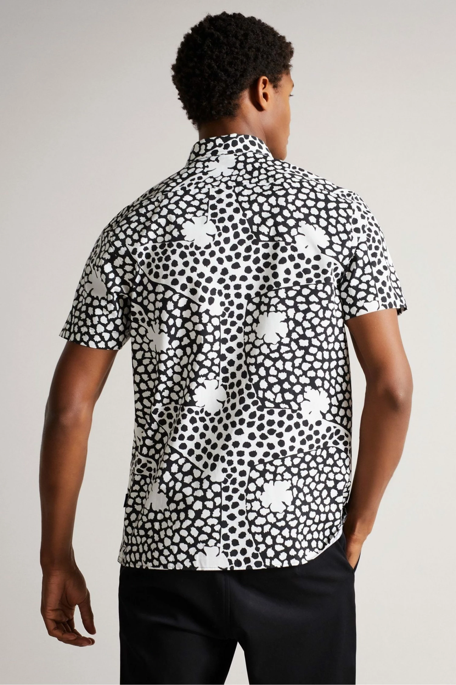 Upgrade your work shirts ready for the summer with this Ted Baker addition to your wardrobe. Designed with an all over geo flowers and polka dot print, the shirt is fitted with short sleeves, button up front and collar that can be worn on its own or under a smart jacket or blazer this season.