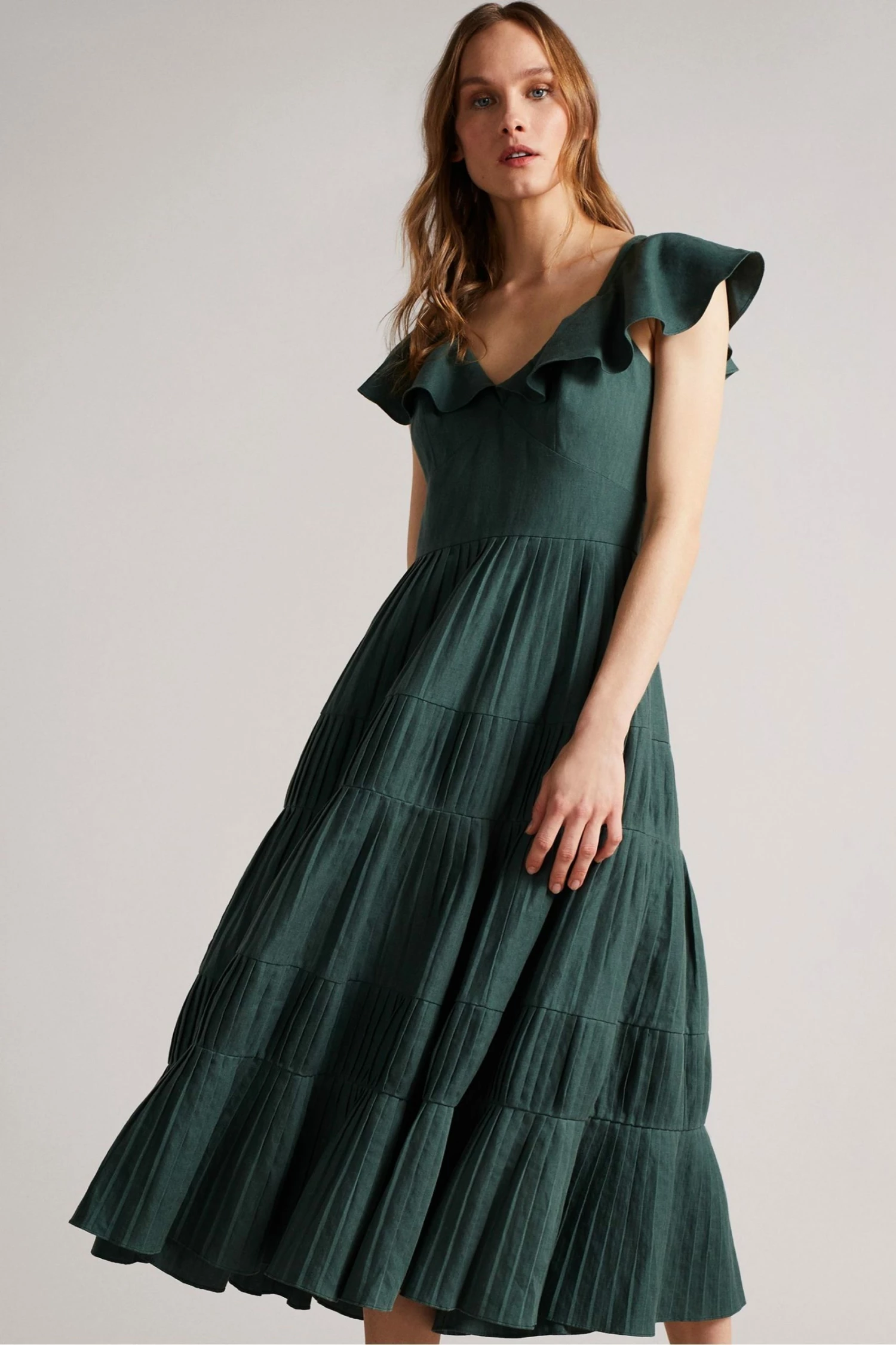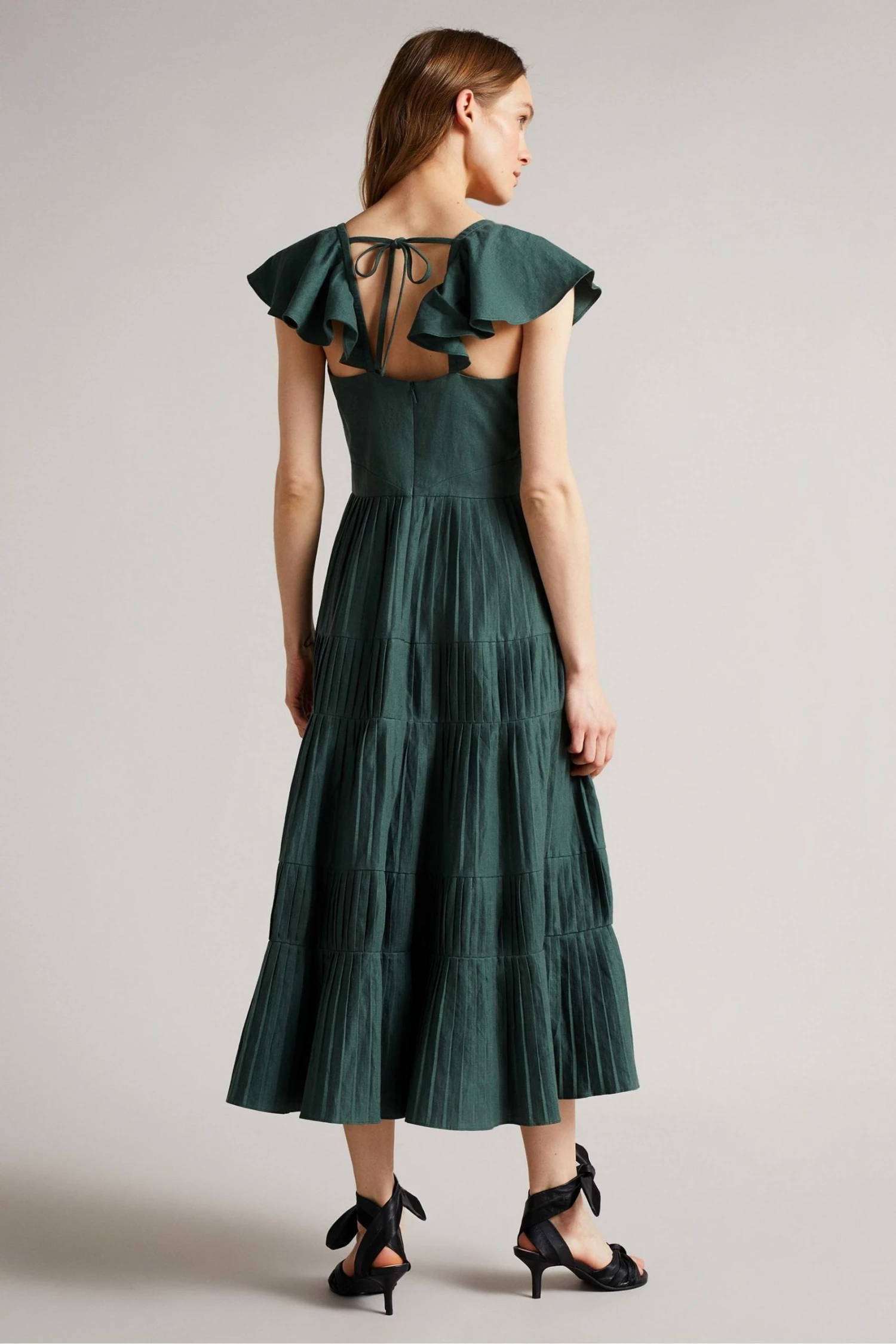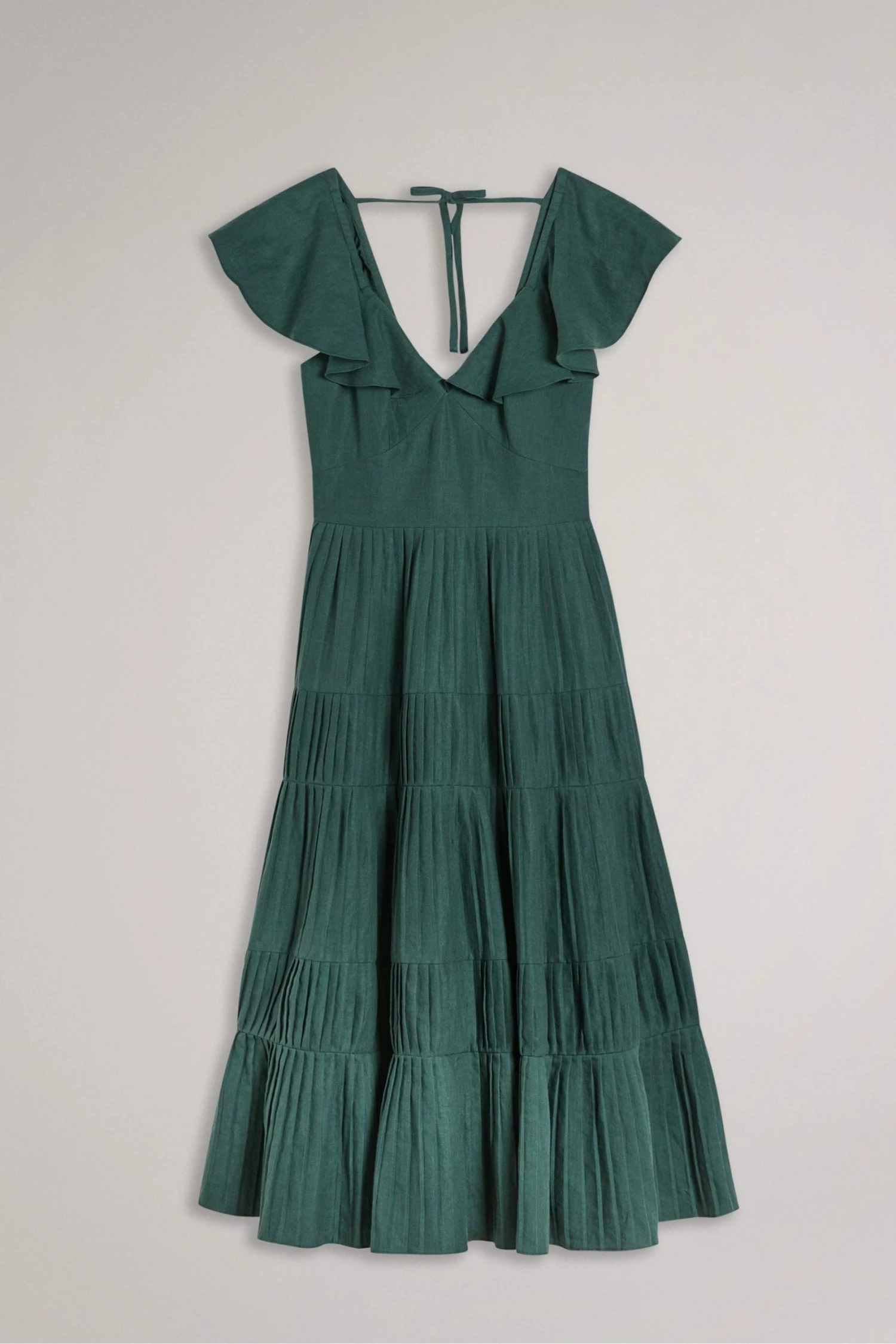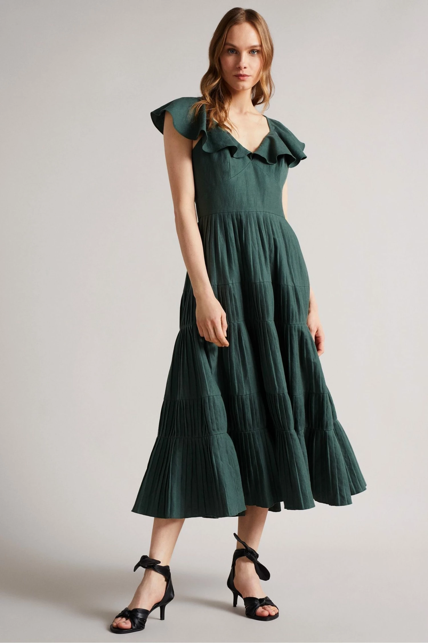Ted Baker Teal-Blue Iveth Exaggerated Ruffle Midi Dress