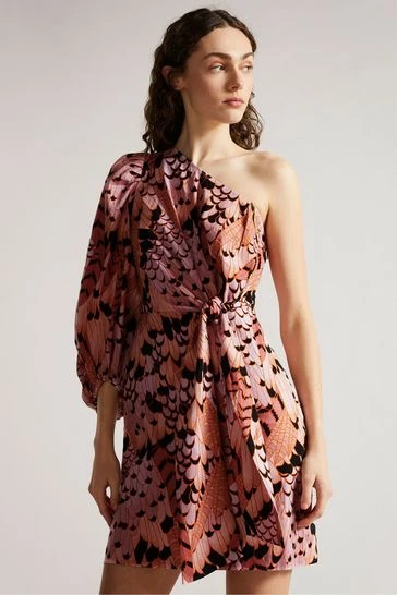 Ted Baker Ted Bake Orange Tie Waist One Shoulder Mini Dress