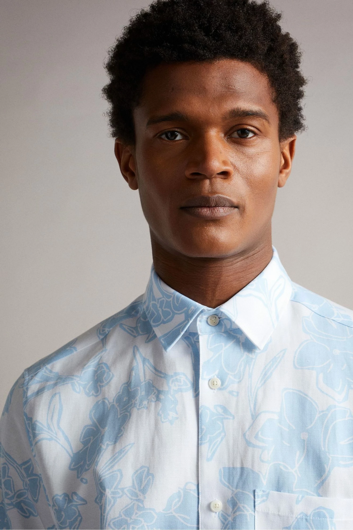 Ted Baker Telfrd Lt-Blue Ss Floral Printed Shirt