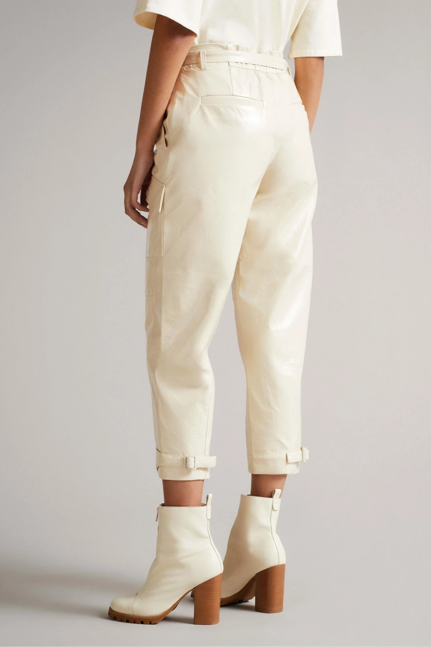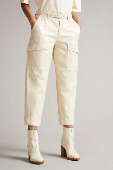 Ted Baker Vinala Ivory Cream Barrel Leg Vinyl Trousers