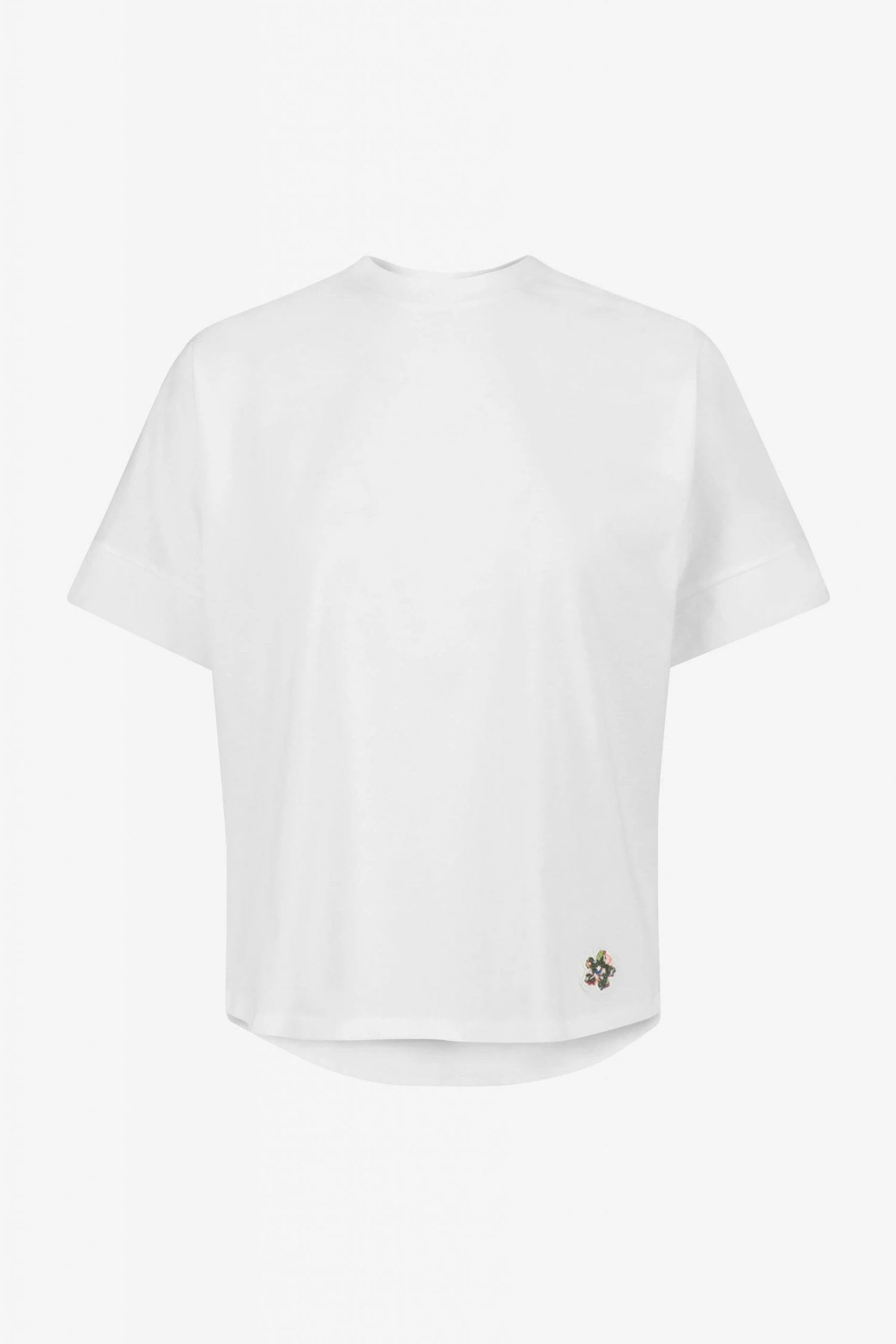 We take your plain t-shirt and raise you, ERISANA. This relaxed tee will be your go-to when you need to be comfortable yet on-trend. Adorned by our sweet yet subtle Magnolia embroidered patch, it elevates this classic to new heights. Made from 100% organic cotton and with a rounded hem, this contemporary fit tee will look as impactful over a mini skirt as it will over slim jeans. But, we ll leave that up to you.