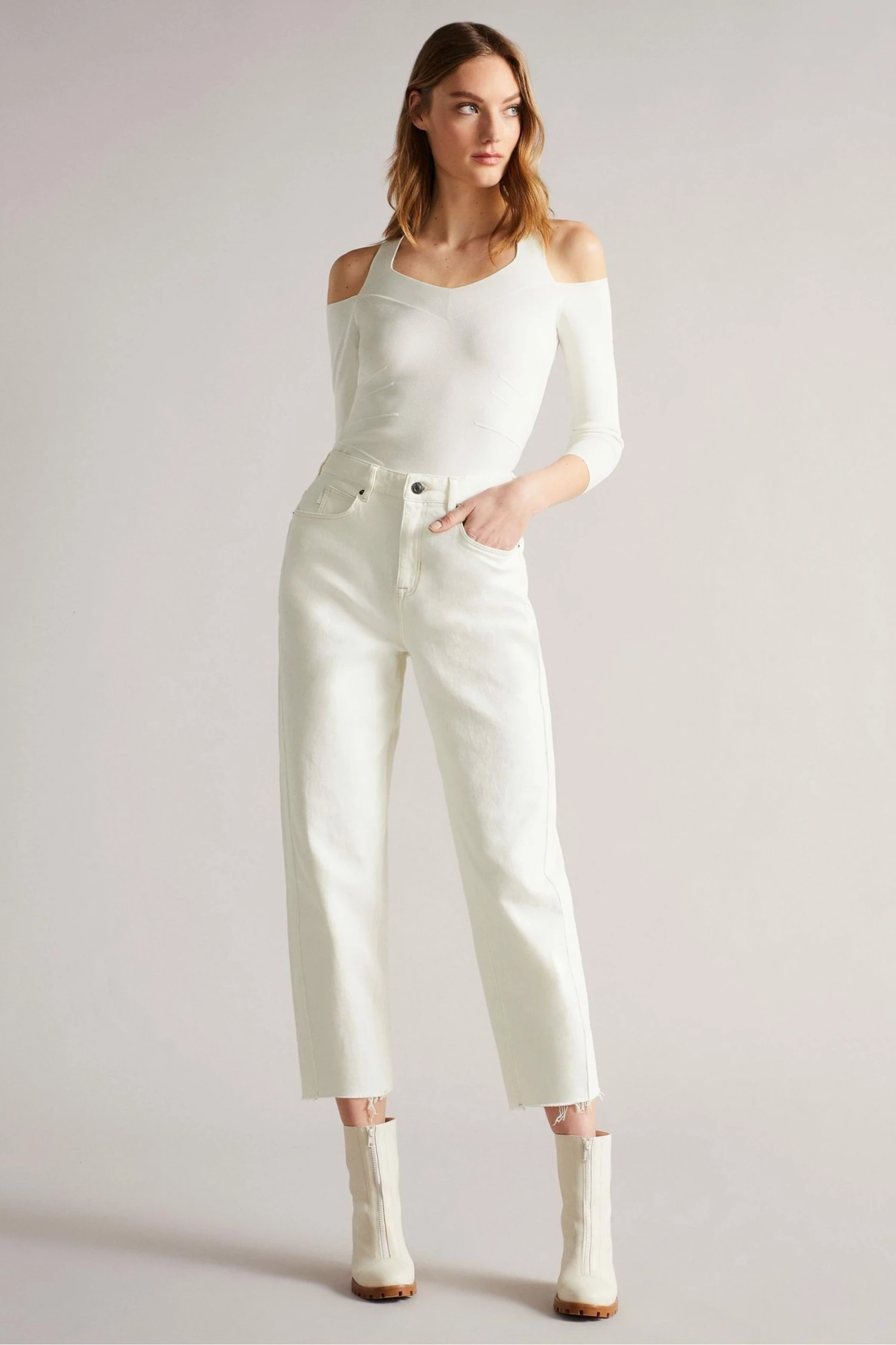 Ted Baker White Full Needle Rayon Knit Top