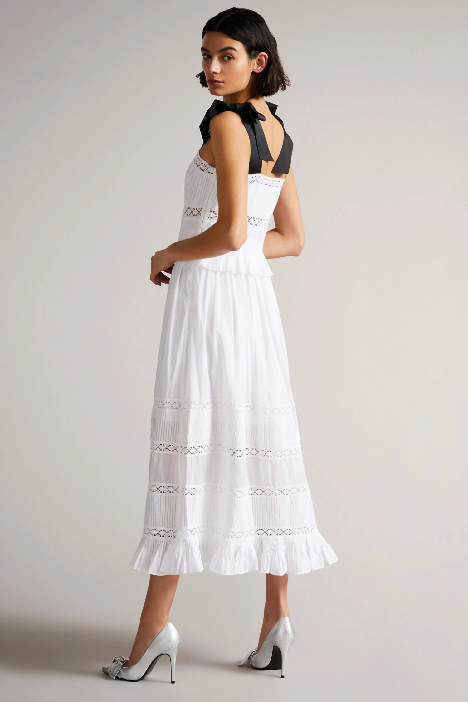 Ted Baker White Promis Midi Dress With Grosgrain Straps